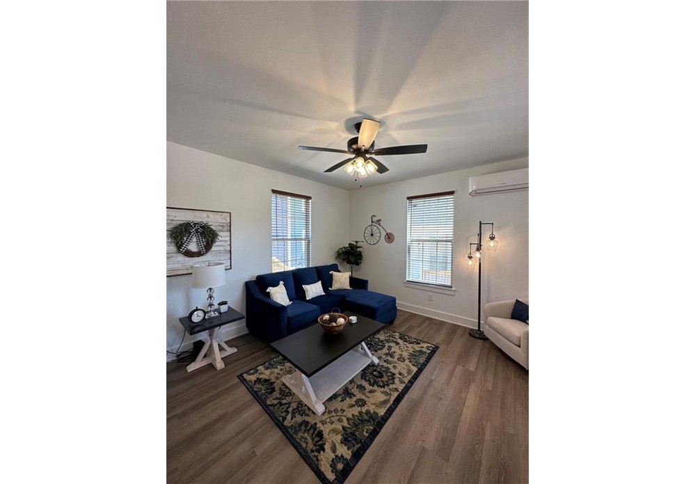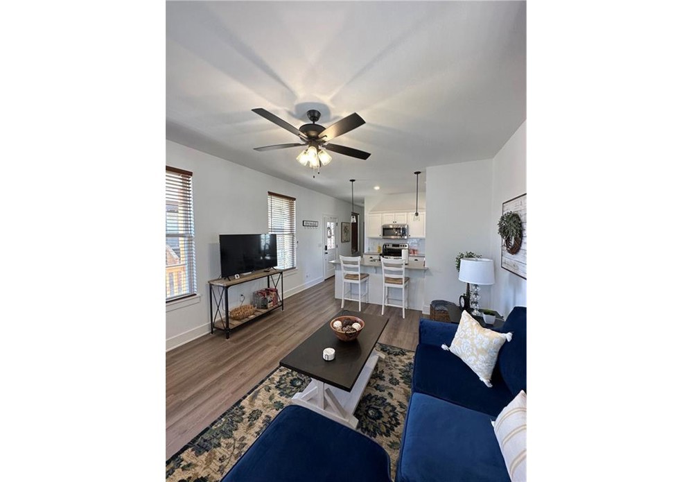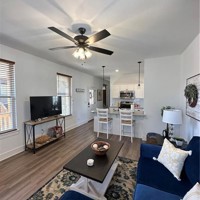 This charming fully furnished home was recently built and is now available for rent. It features one bedroom and one bathroom, making it a cozy and comfortable living space for singles or couples. As you approach the house, you'll be welcomed by the inviting front porch, perfect for enjoying a morning coffee or relaxing in the evening. Inside, the house has an open floor plan that maximizes the use of space. The living area is spacious and features plenty of natural light, making the space feel bright and airy. The kitchen is modern and fully equipped with all the necessary appliances, including a refrigerator, stove, microwave, and dishwasher. The bathroom is also modern and features a shower/tub combo. The bedroom is located at the back of the house with plenty of space and a closet.
