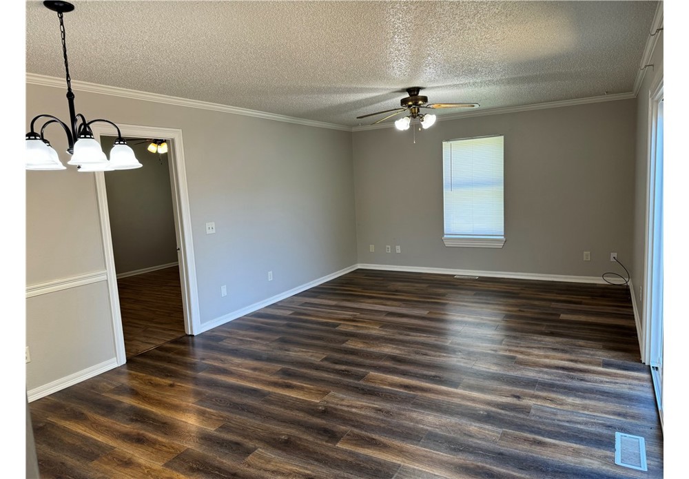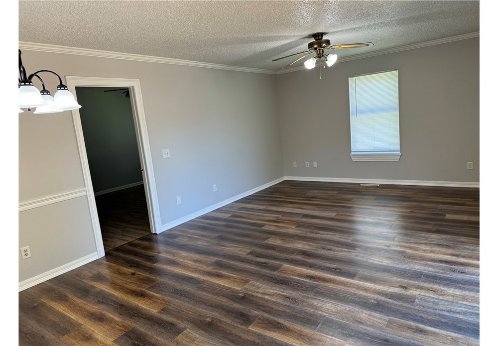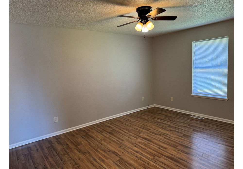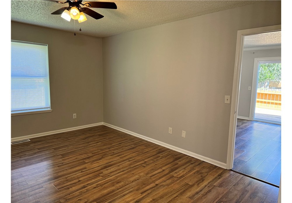 Nice and roomy 3 bedroom/2 full bath duplex with a large, unfenced back yard. Comes with Stove and Dishwasher. Convenient location.