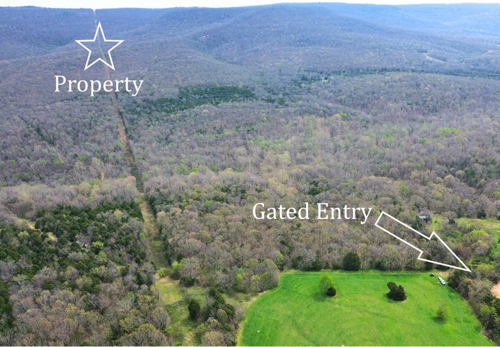 Secluded 320 acres with creek that is set up for hunting! Just a few miles off the highway down a dead end road, you get ultimate privacy with easy access. With a well maintained trail system, two ponds and multiple plots for wildlife, this one is ready to go. Long Creek meanders its way right through the middle of this unique tract and a natural gas pipeline creates a lengthy clearing for hunting and trail riding. Just through the gate are multiple cleared, flat areas for building a cabin or shop. Gorgeous views up top for miles with numerous rock features and bluffs. Healthy populations of deer, bear and turkey. If you're looking for privacy and a highly usable recreational piece, you'll want to check this one out. 20 minutes to Harrison, 30 minutes to Huntsville and 1 hour to Fayetteville. Buyer to verify, but should be able to connect to the natural gas line for service.
