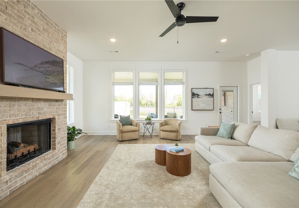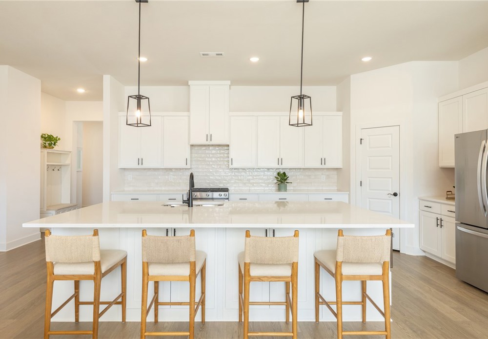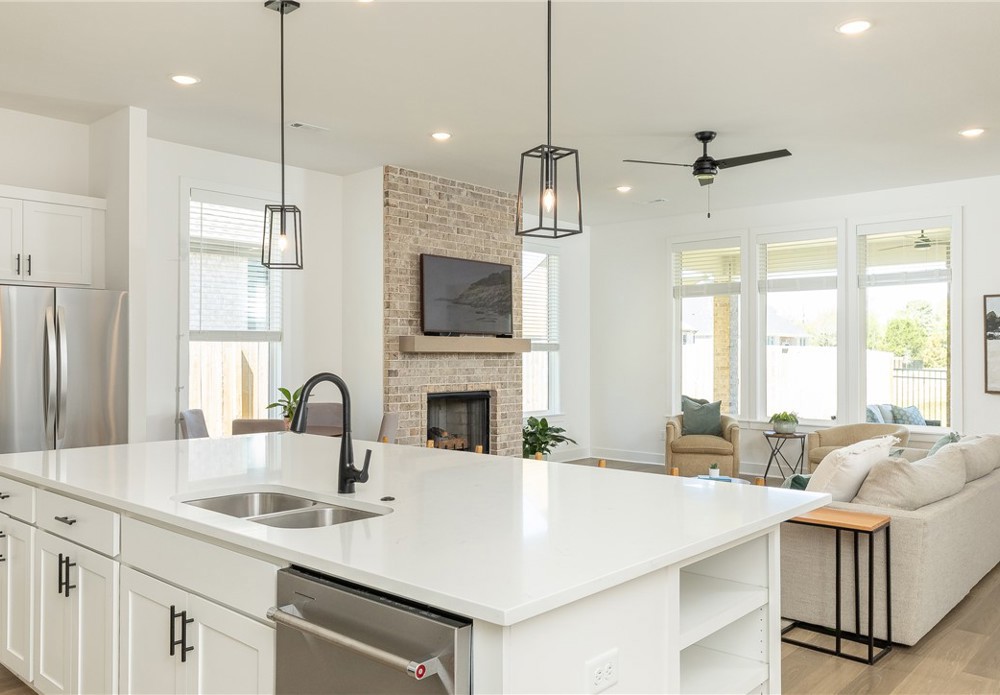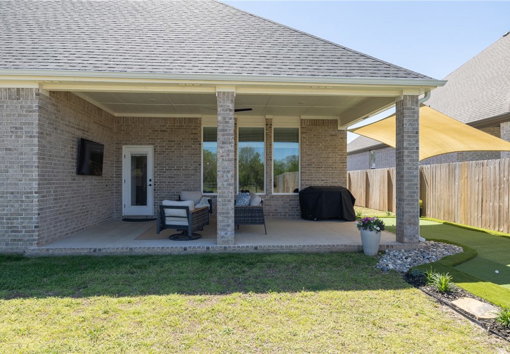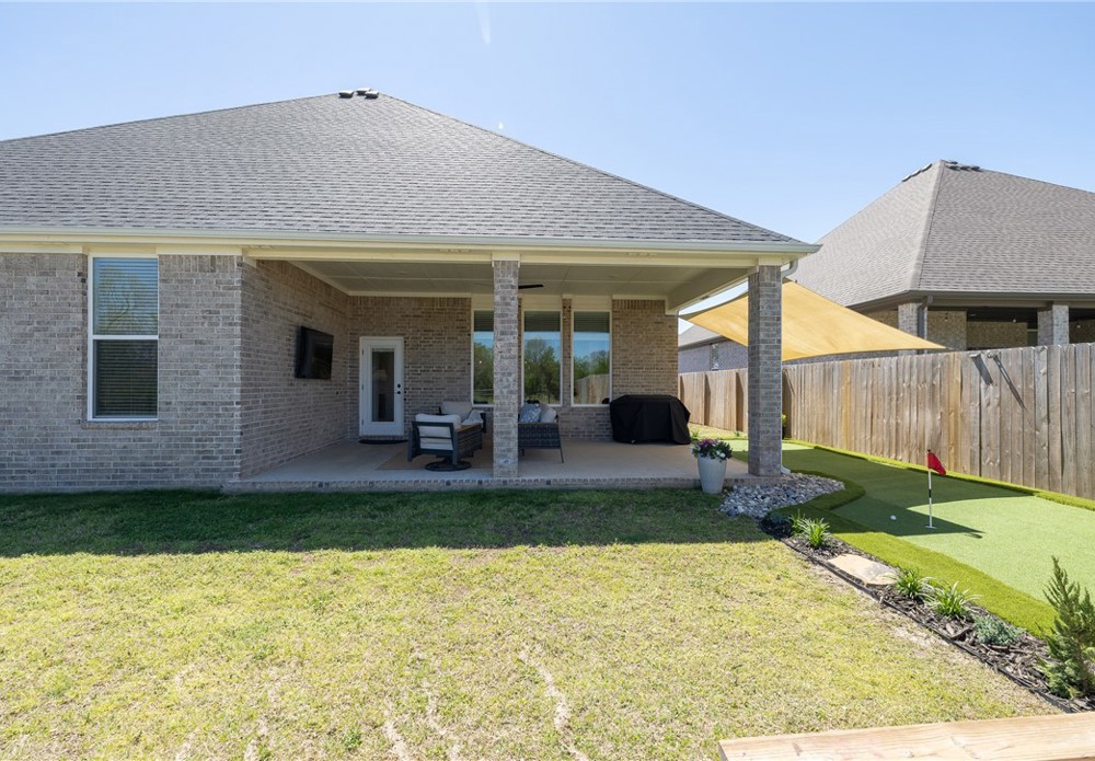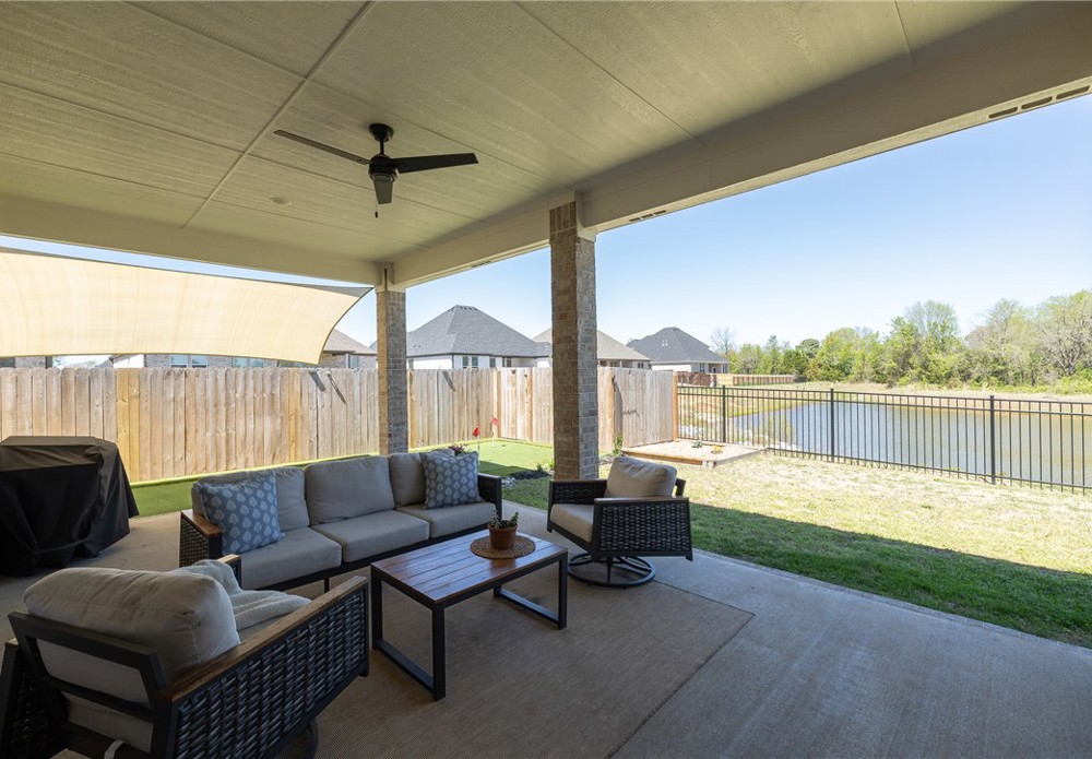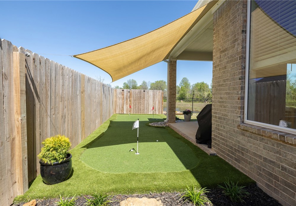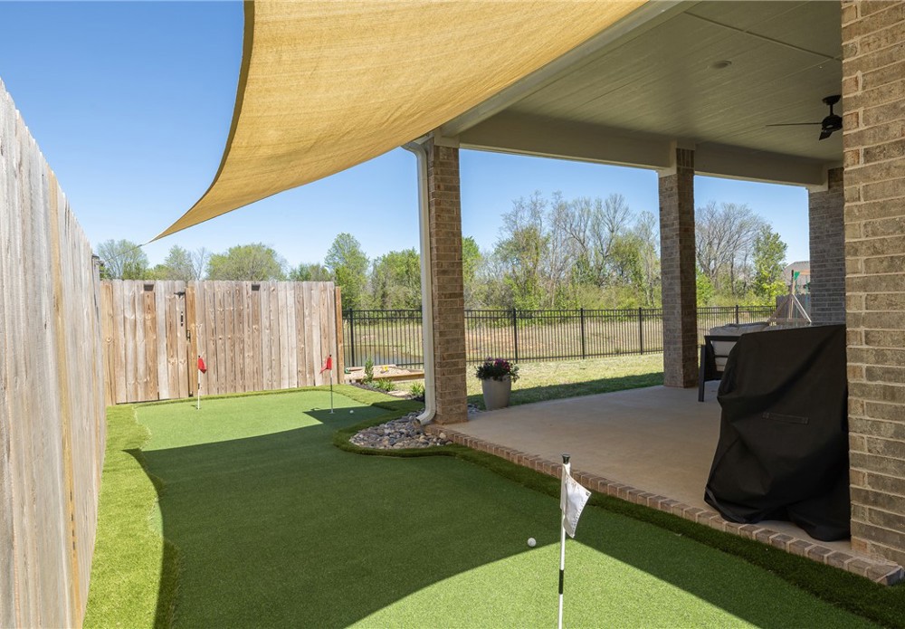 Built in 2024, this beautifully designed single-level home offers 4 bedrooms and 3 bathrooms with a spacious, modern layout. The open floor plan is perfect for everyday living and entertaining, featuring a large kitchen island that anchors the main living space. A dedicated office provides a quiet area for work or study. The spacious primary suite and en-suite bath offers a walk-in shower, soaking tub and walk-in closet. Step outside to a covered back patio that overlooks a serene pond, creating a peaceful setting for relaxing or hosting guests. The backyard also includes a private putting green, adding a fun and unique touch for golf enthusiasts. This home blends comfort, style, and functionality in a thoughtfully designed space. Fantastic location close to Lake Fayetteville, trails and the Botanical Gardens.