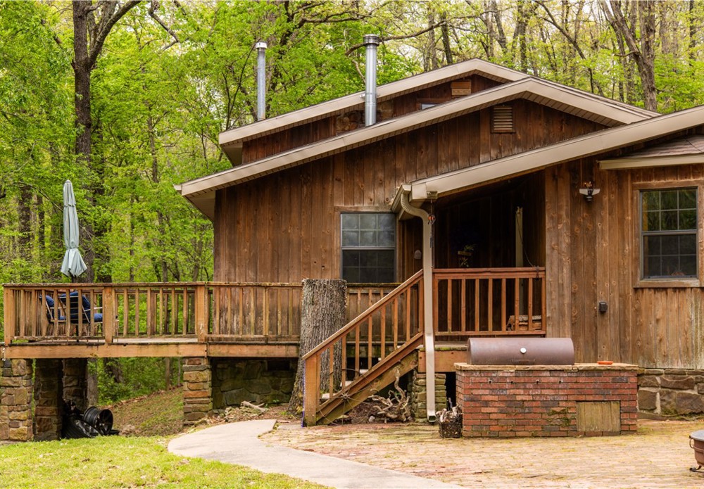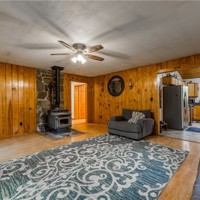 Spacious 5-bedroom, 2-bath home offering 2,116 sq ft on 2.17 acres of peaceful, tree-lined surroundings. Built with durable 2x6 exterior walls, this cedar home blends comfort, efficiency, and natural beauty. The open living area is filled with natural light and showcases scenic views of the surrounding landscape. Major updates include a new roof, gutters, and chimney in 2020, providing added peace of mind. Outside, you’ll find a detached 2-car garage and a metal carport, offering ample parking and storage options. Enjoy the outdoors from the patio with a built-in BBQ pit—perfect for entertaining, relaxing evenings, or weekend gatherings. The acreage provides privacy and plenty of space for gardening, recreation, or simply enjoying the quiet setting. A rare combination of space, functionality, and privacy—this property is ready to welcome you home. May not go FHA, RD or VA- Cosmetic repairs may be desired. Selling AS-IS