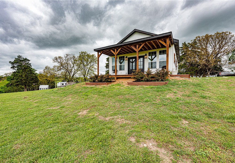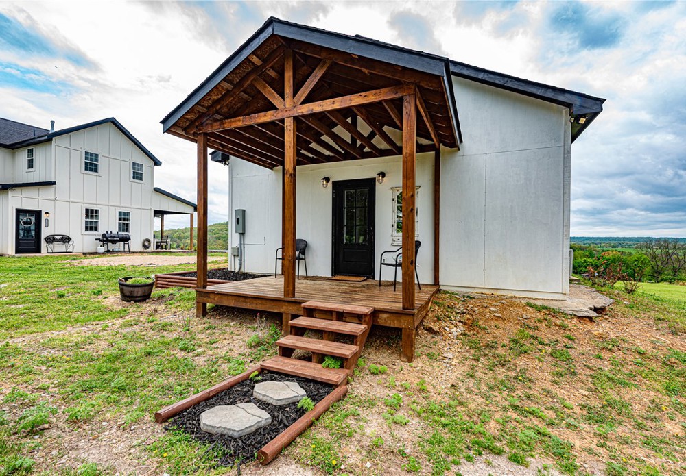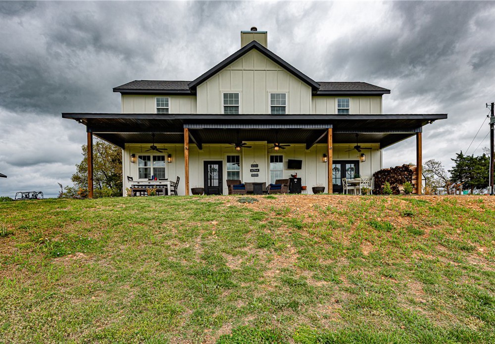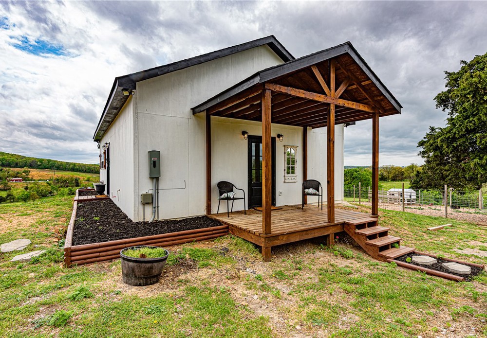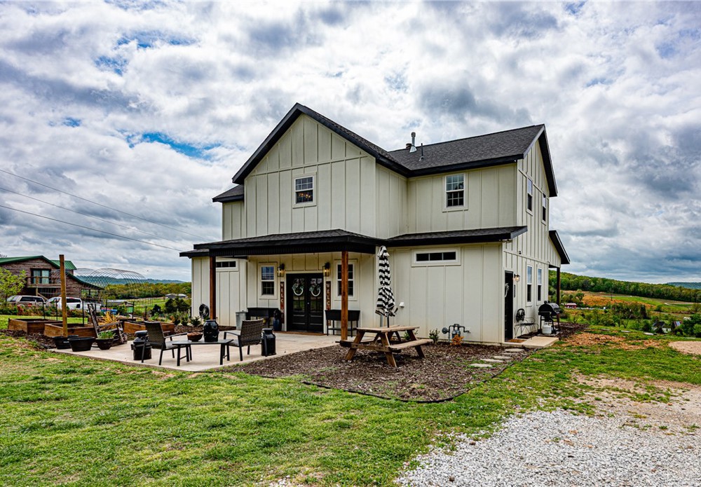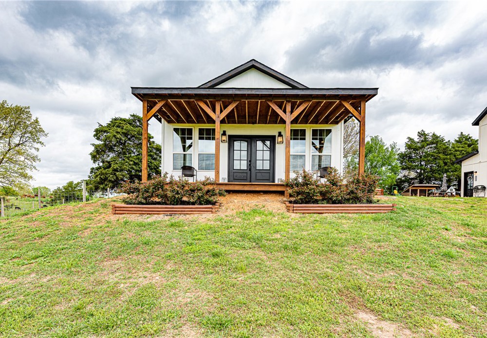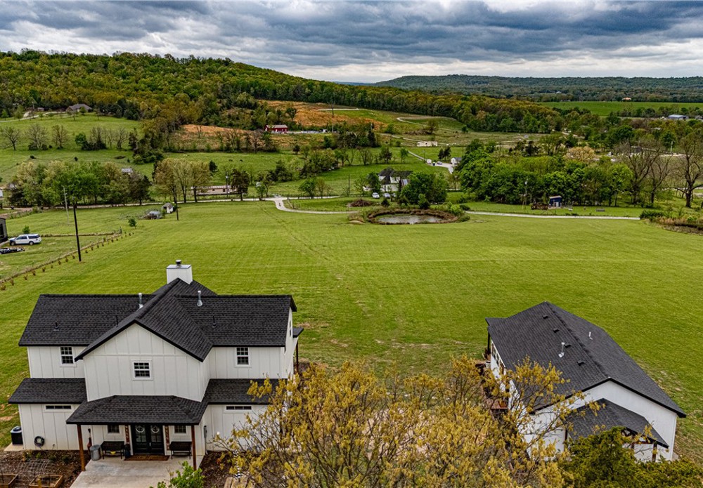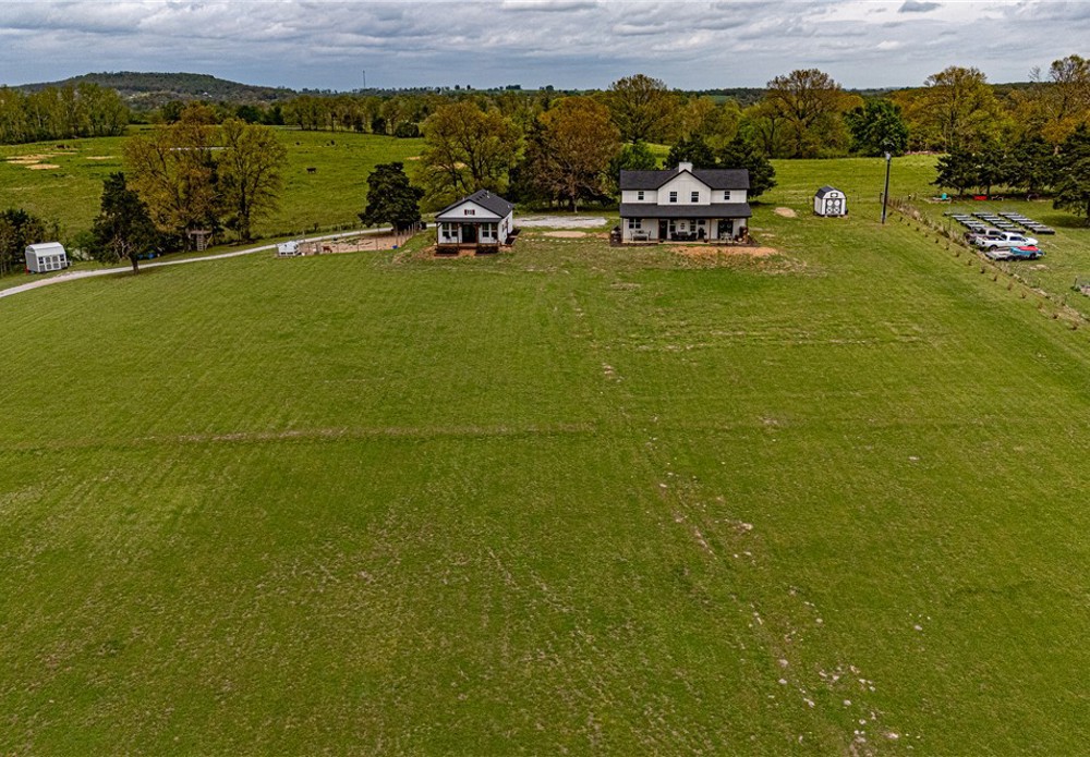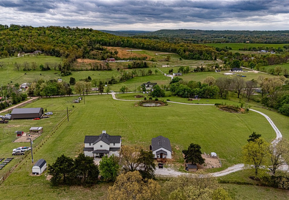 This 8.93 Acre +/- property features a Main home & Guest Home built in 2023! With 1921 Sqft in the main home, head inside from the covered front porch to open concept living w/ wood-burning stove, tons of natural light & wood-look tile throughout. Light & bright kitchen w/ quartz counters, white cabinetry w/ soft close hinges, SS Apps, large center island & walk-in pantry. Rejuvenate in the primary bedrm w/ private ensuite feat: double sink vanity, walk-in shower & dual walk-in closets! Split floor plan w/ upstairs feat: 2nd living w/ built-ins, 2 add’tl bedrms & full bathrm! 912 SqFt Guest Home is open concept w/ 10’ ceilings, natural light, & wood-look tile throughout feat: living rm, full kitchen, laundry rm, 1 Bedrm w/ walk-in closet & 1 full bathrm! Both homes feature covered back patios overlooking the gorgeous property & Arkansas’s rolling hills! 8.93 Ac +/- gently rolling w/ 2 ponds perfect for nature enthusiasts or hobby farmers! PLUS 2 storage bldgs & main house is prewired for hot tub. Don't miss out!