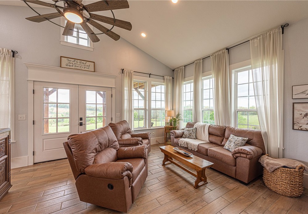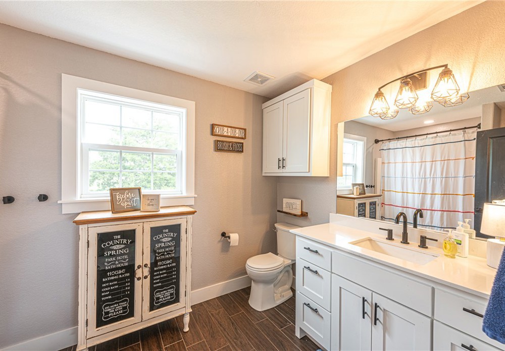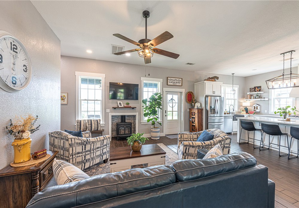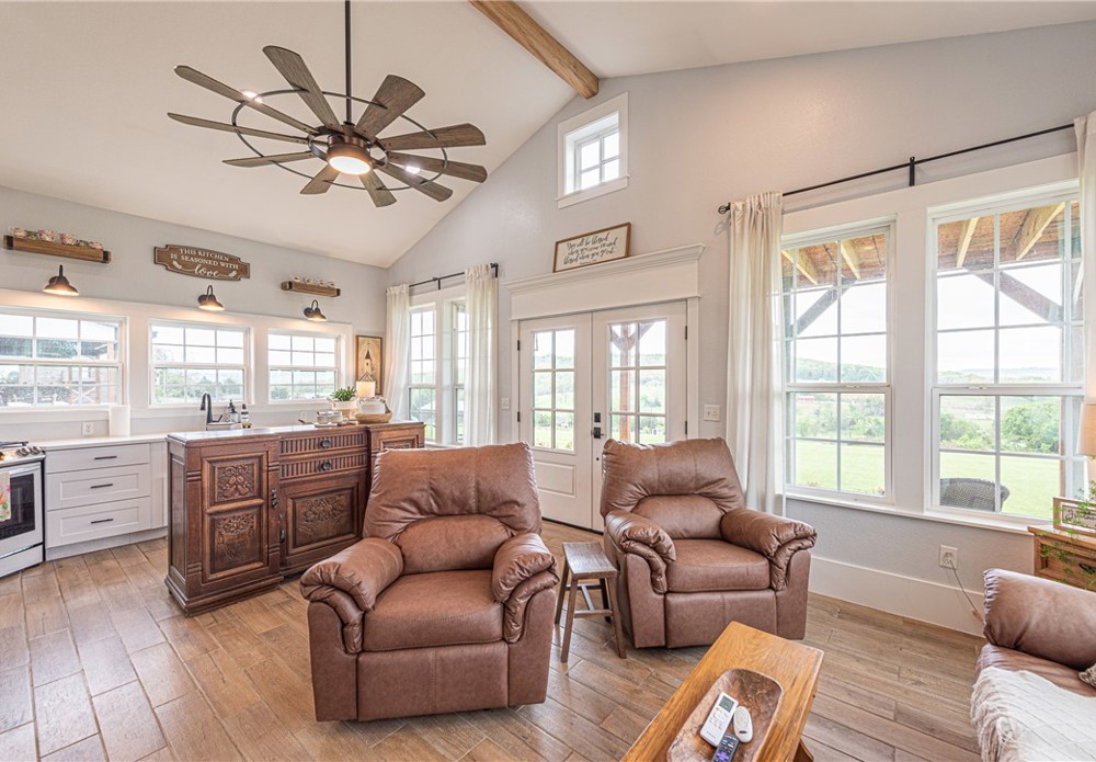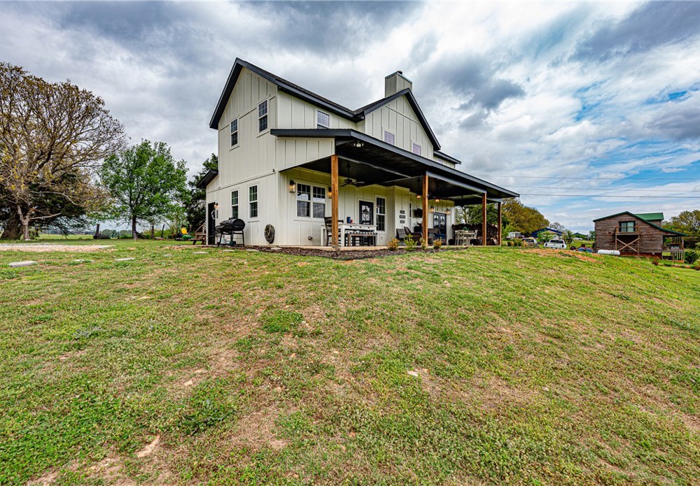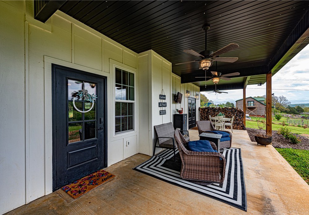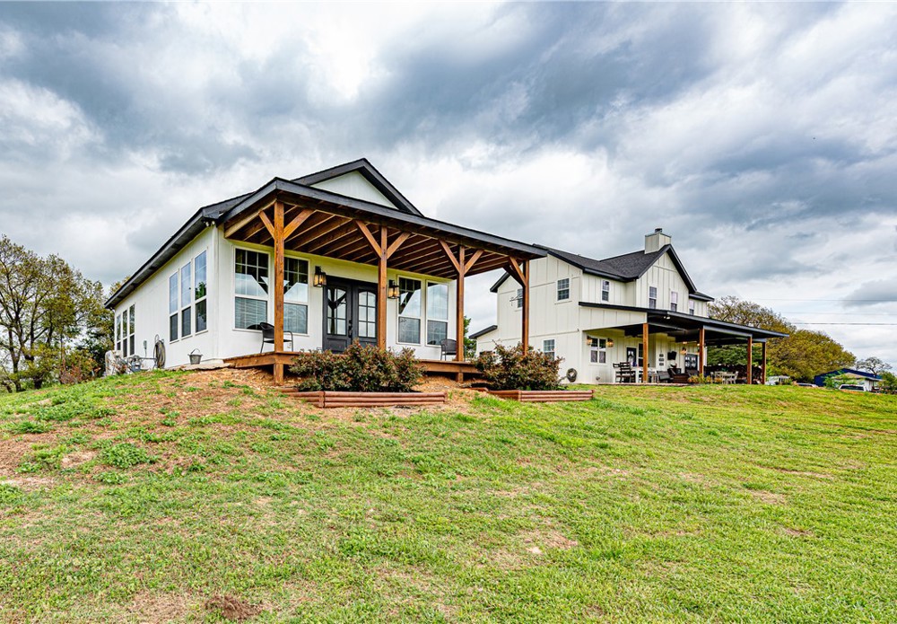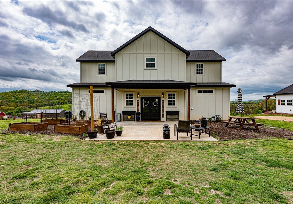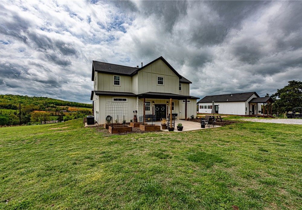 This 8.93 Acre +/- property features a Main home & Guest Home built in 2023! With 1921 Sqft in the main home, head inside from the covered front porch to open concept living w/ wood-burning stove, tons of natural light & wood-look tile throughout. Light & bright kitchen w/ quartz counters, white cabinetry w/ soft close hinges, SS Apps, large center island & walk-in pantry. Rejuvenate in the primary bedrm w/ private ensuite feat: double sink vanity, walk-in shower & dual walk-in closets! Split floor plan w/ upstairs feat: 2nd living w/ built-ins, 2 add’tl bedrms & full bathrm! 912 SqFt Guest Home is open concept w/ 10’ ceilings, natural light, & wood-look tile throughout feat: living rm, full kitchen, laundry rm, 1 Bedrm w/ walk-in closet & 1 full bathrm! Both homes feature covered back patios overlooking the gorgeous property & Arkansas’s rolling hills! 8.93 Ac +/- gently rolling w/ 2 ponds perfect for nature enthusiasts or hobby farmers! PLUS 2 storage bldgs & main house is prewired for hot tub. Don't miss out!