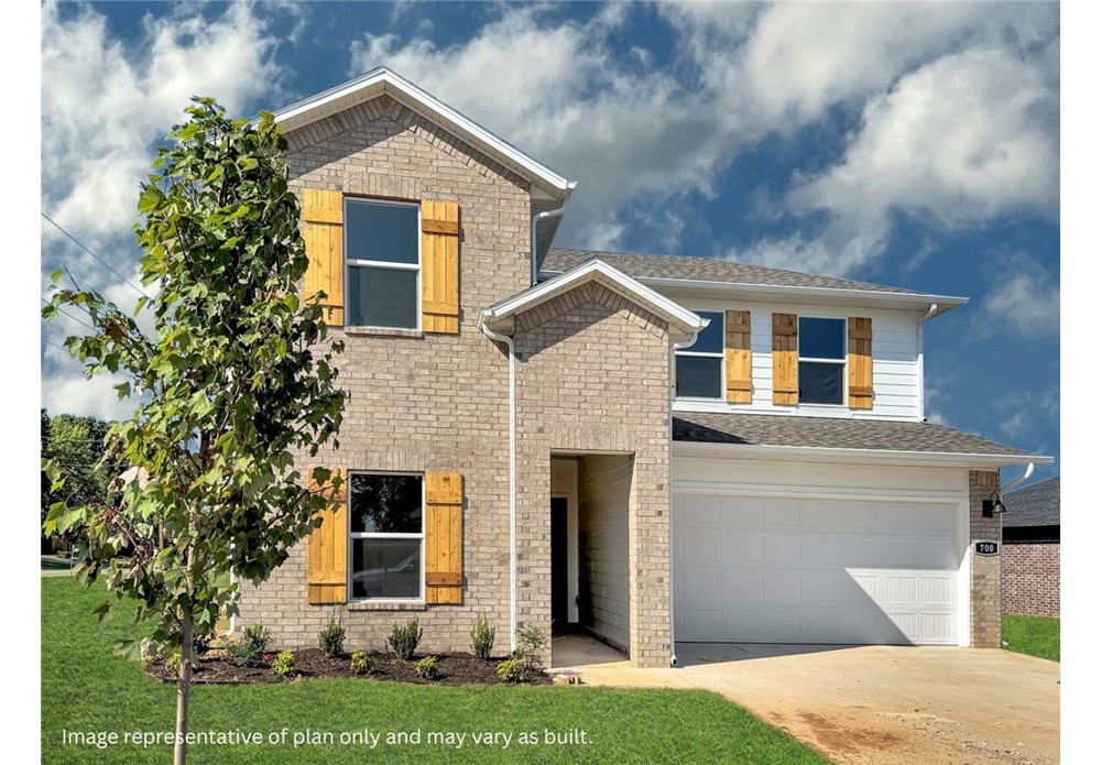The Miraculous Mitchell plan in The Element, in beautiful Fayetteville, AR! This home offers 4 bedrooms and 3 full bathrooms! Upon entering, you’ll find a spacious living room and kitchen with a dining room! The kitchen features beautiful quartz countertops, a gas range, and pantry. The primary bedroom and ensuite are located on the first floor. The primary bath features quartz countertops with double sinks and a walk-in shower! Upstairs, you’ll find a game room, perfect for entertaining along with bedrooms 3 & 4 with another full bathroom! Each home will have LVP flooring throughout the first floor, with carpeted stairs and carpet in all upstairs living areas. Upstairs wet areas will have LVP flooring. The exterior will feature brick and Hardie® siding per plan and a covered patio per plan. Homes in this neighborhood are equipped a programmable thermostat which allows you to effortlessly control your environment with the touch of a button. Landscape package! Garage Door opener! Taxes and parcel number TBD.