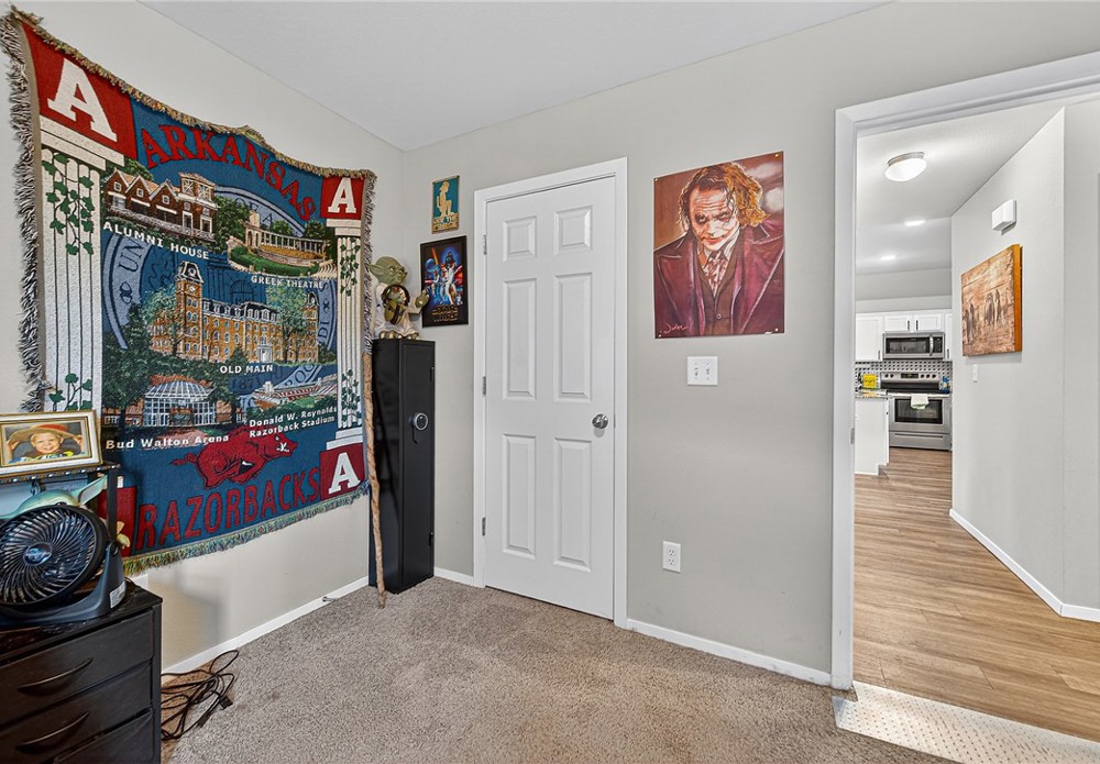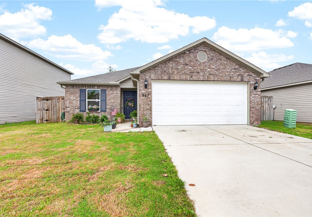 Ideally located only a quick 7-minute drive from the University of Arkansas, this beautifully designed home offers both convenience and modern comfort. Featuring 3 bedrooms, 2 bathrooms, and a 2-car garage, this property showcases a clean, contemporary style with white cabinetry and white granite countertops throughout. The kitchen is equipped with sleek stainless steel appliances. Inside, you’ll find 9-foot ceilings and recessed LED lighting that brighten the living area. Durable luxury vinyl plank flooring runs throughout the main living spaces, offering a stylish, low-maintenance lifestyle, with cozy carpeting in the bedrooms. Please note: the home is equipped with solar panels, which will not be paid off at closing. The buyer will assume the remaining solar agreement, adding $204.73 to their monthly expenses. This move-in ready home blends location, style, and smart energy features—don’t miss your opportunity to make it yours!