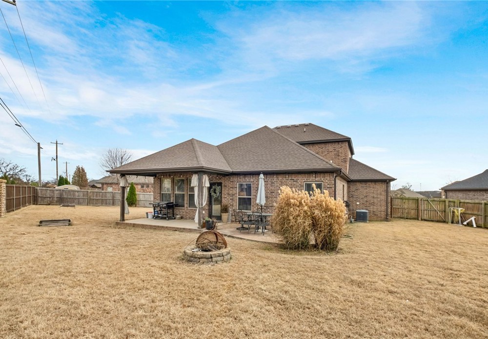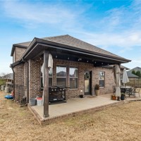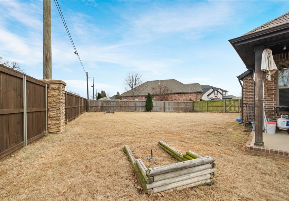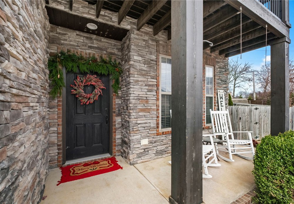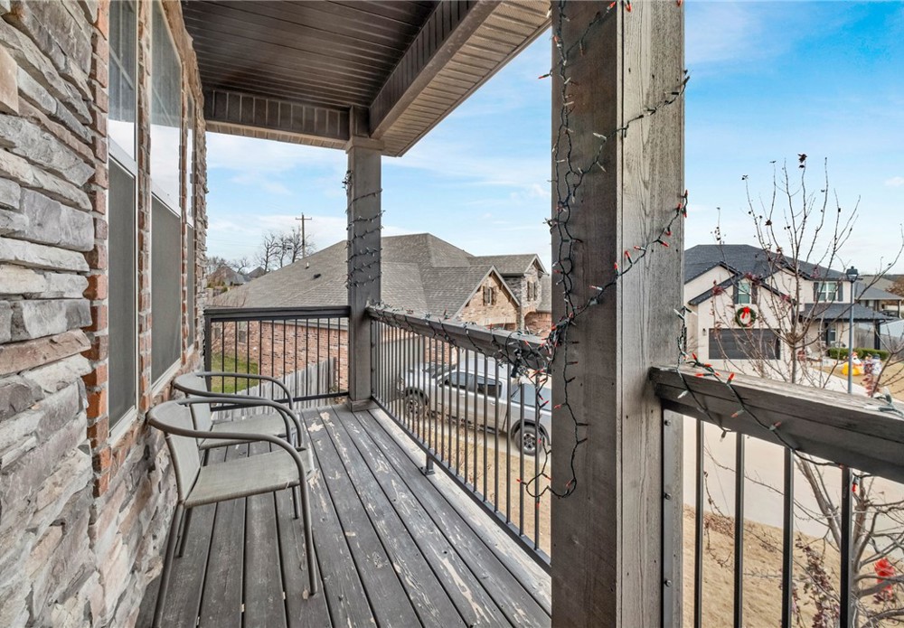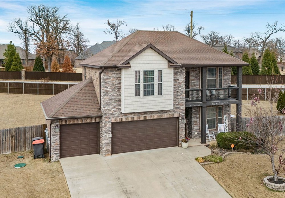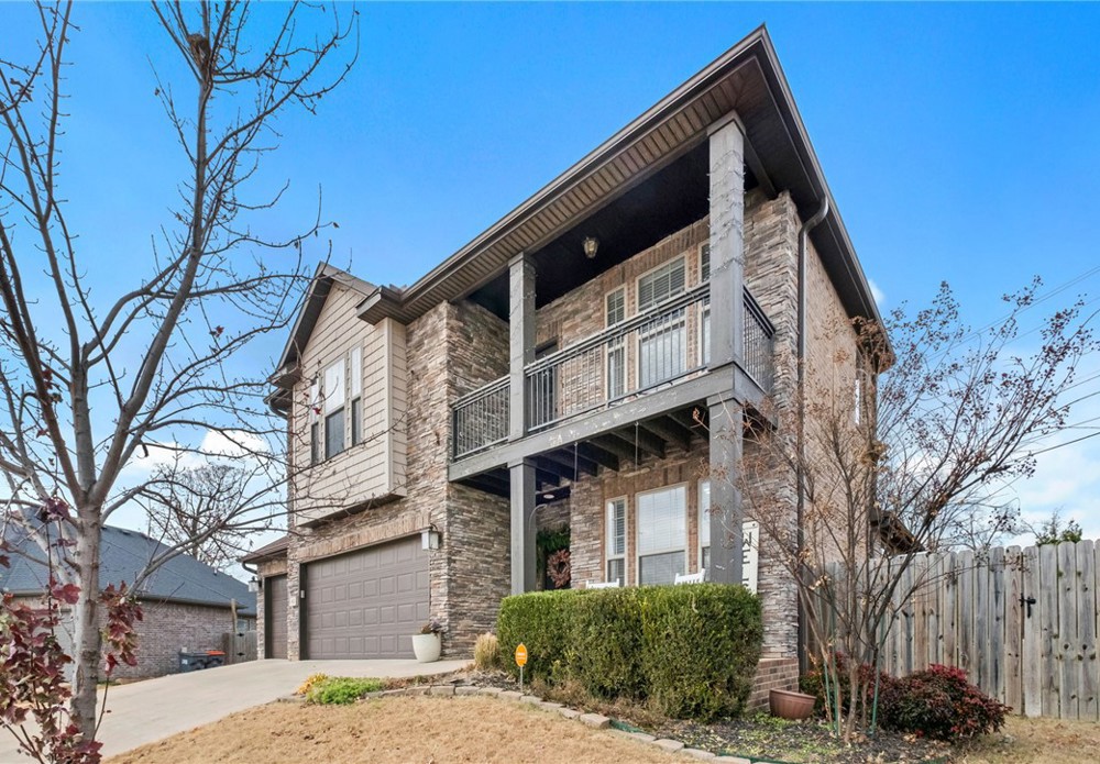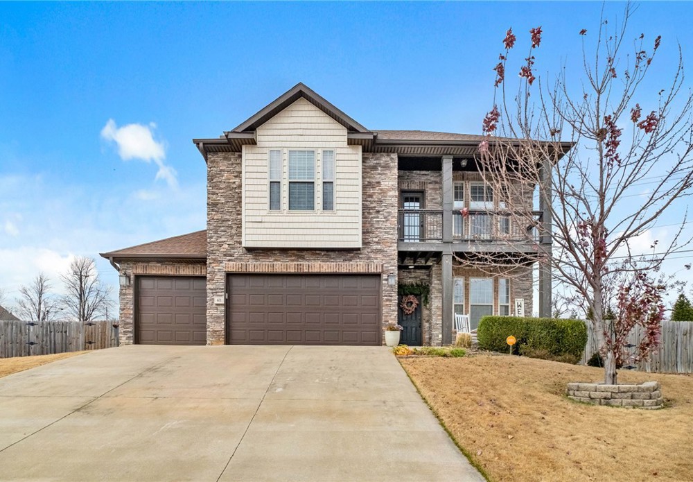 Built in 2016, this 4-bedroom, 2.5-bath residence spans 2,240 square feet on an oversized cul-de-sac lot in Cave Springs. Quality-built home with brick and stone exterior, a rare 3-car garage, and thoughtful design throughout. The open concept main level flows from kitchen to living and dining, anchored by rich hardwoods, crown molding, and a tile-surround gas fireplace. The kitchen features granite counters, a large island, stainless appliances with gas range, walk-in pantry, and tiled backsplash. A covered front porch, covered rear patio, and second-story balcony invite you to enjoy NWA's seasons in comfort. The location is exceptional: minutes to I-49 and Highway 112, a short drive to Pinnacle Hills Promenade, XNA, Mt. Hebron, and the full breadth of Bentonville and Rogers dining, shopping, and entertainment. The community offers a pool and playground. A well-appointed home in a setting that makes Northwest Arkansas living effortless.