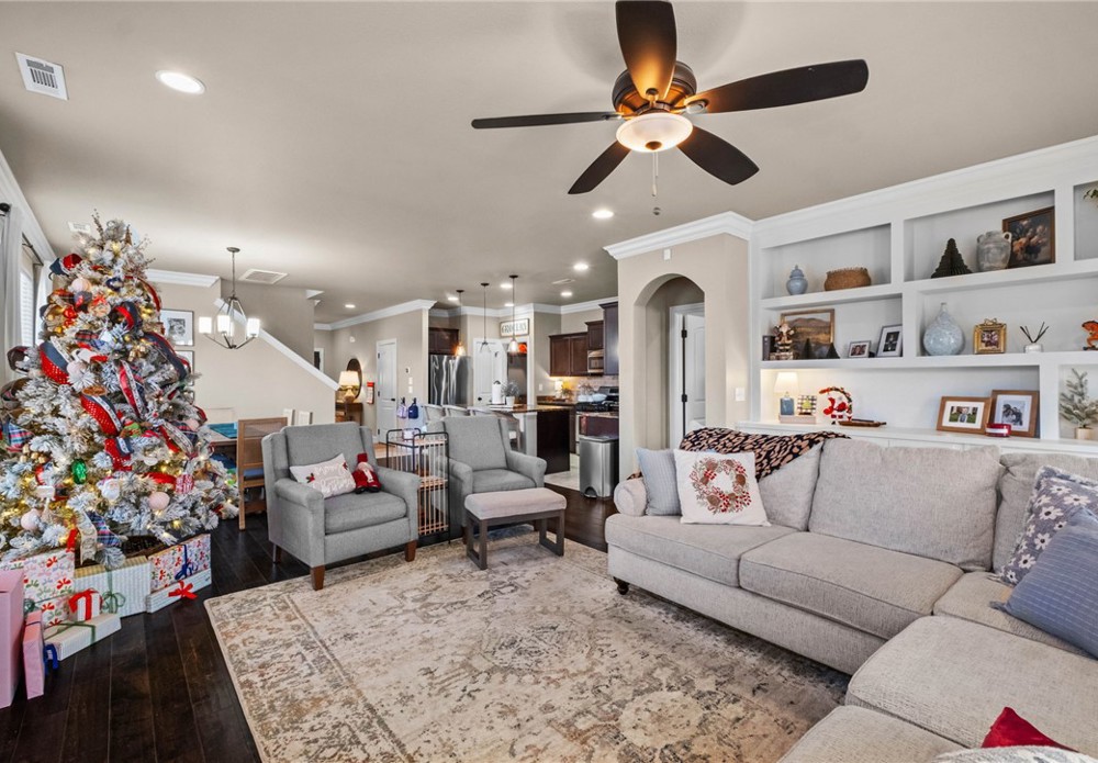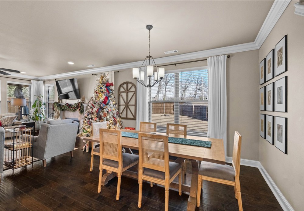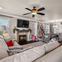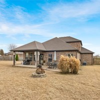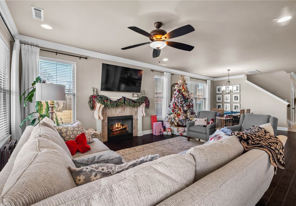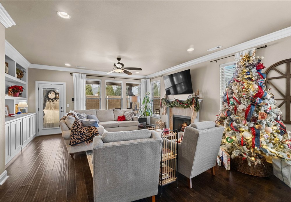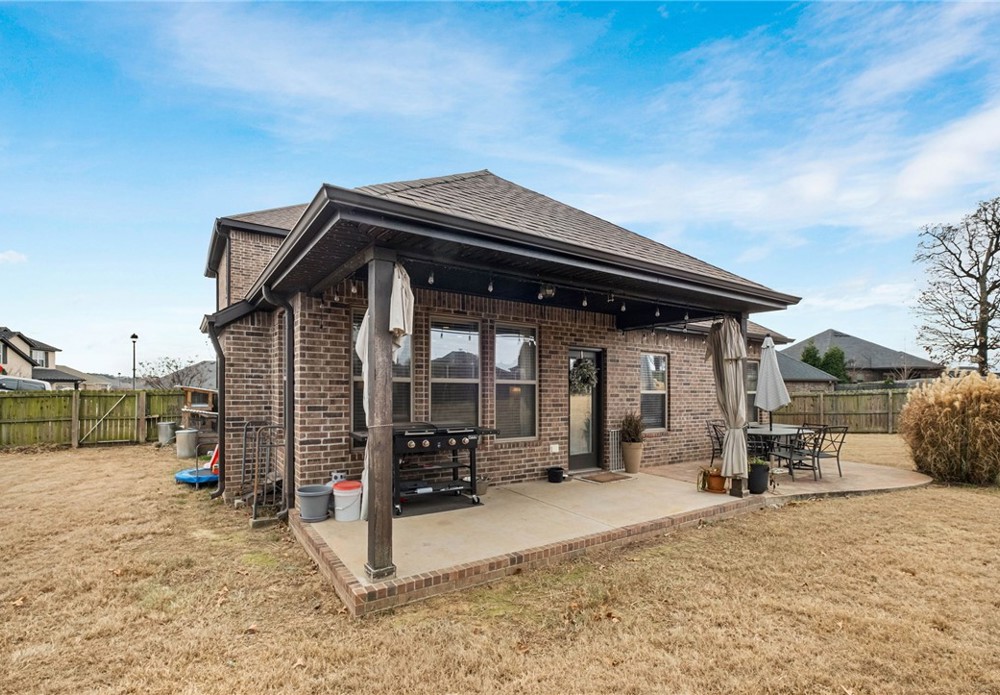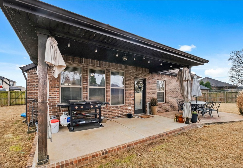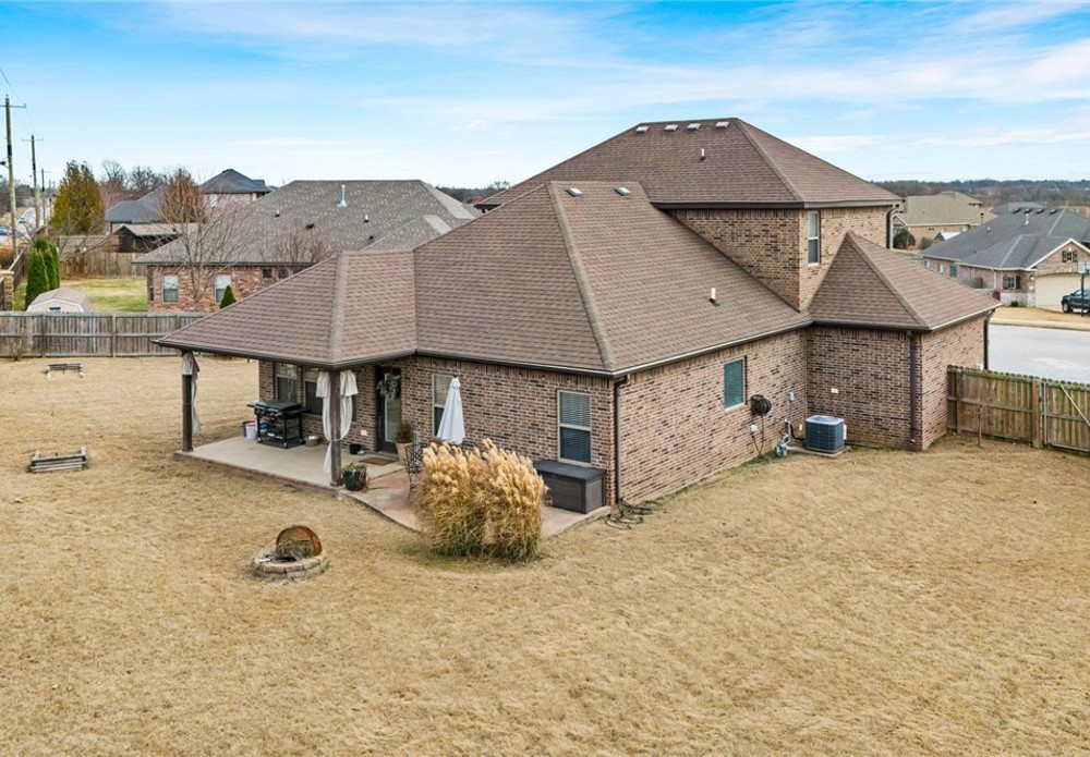 Built in 2016, this 4-bedroom, 2.5-bath residence spans 2,240 square feet on an oversized cul-de-sac lot in Cave Springs. Quality-built home with brick and stone exterior, a rare 3-car garage, and thoughtful design throughout. The open concept main level flows from kitchen to living and dining, anchored by rich hardwoods, crown molding, and a tile-surround gas fireplace. The kitchen features granite counters, a large island, stainless appliances with gas range, walk-in pantry, and tiled backsplash. A covered front porch, covered rear patio, and second-story balcony invite you to enjoy NWA's seasons in comfort. The location is exceptional: minutes to I-49 and Highway 112, a short drive to Pinnacle Hills Promenade, XNA, Mt. Hebron, and the full breadth of Bentonville and Rogers dining, shopping, and entertainment. The community offers a pool and playground. A well-appointed home in a setting that makes Northwest Arkansas living effortless.