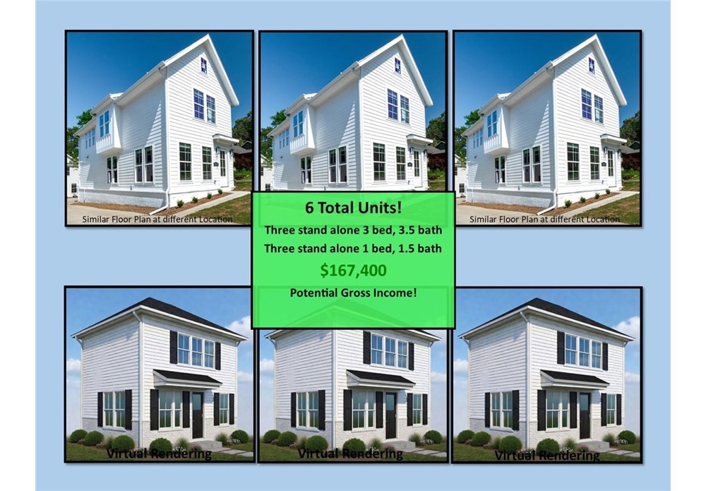 Brand-new turn key investment opportunity just minutes from campus! This property features six total units: three detached 3 bed, 3.5 bath homes and three detached 1 bed, 1.5 bath homes (no shared walls!). All three 1-bedroom units are pre-leased with start dates of 8/1/26 (1 at $1500/month and 2 and $1400/month). Seller can lease the 3-bedroom homes prior to closing for around $3050 to $3150 per unit. Potential gross income of $167,400 for the second lease cycle and an estimated $161,400 gross income for first year . Each unit includes a refrigerator, washer, and dryer, along with quartz countertops, durable luxury vinyl plank flooring throughout, and custom ceiling-height cabinetry. All bedrooms have their own private en-suite bathrooms. Prime location near parks, trails, Fayetteville Square, shopping, dining, and campus!