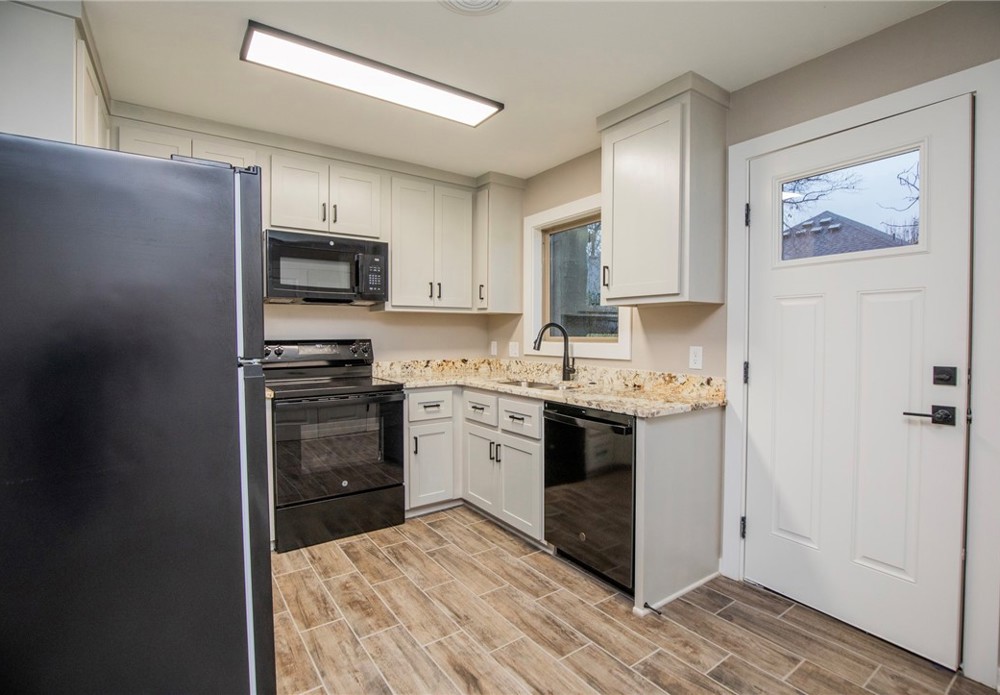 NEWELY REMODELED Duplex in Fayetteville!!!! 2 bedroom 1 bath. Kitchen features granite counters, tile flooring and all new appliances including refrigerator, washer and dryer . Large living room has new carpet and ceiling fan. Bathroom has granite counter additional storage over the toilet, and lighted mirror. Both bedrooms have new carpet and ceiling fans. New Privacy fenced back yard.