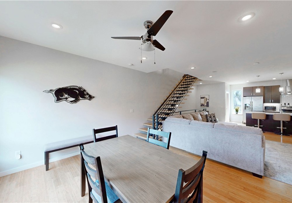Located along MLK in Fayetteville, this well-positioned 3 bed, 2.5 bath townhome offers unbeatable convenience with quick access to campus, downtown, and major commuter routes. The property features rare parking for the area, including a 2-car garage plus two additional dedicated exterior spaces—ideal for residents and guests alike. Inside, the open-concept main living area flows into a functional kitchen with ample pantry storage, while an additional storage room off the garage provides space for bikes, gear, or seasonal items. Refrigerator, washer, dryer, and microwave are included, making this a move-in ready rental. Comes unfurnished. Just minutes from campus, Dickson Street, and downtown Fayetteville, with easy access to shopping, dining, parks, and transit, this townhome offers a prime rental opportunity in one of the city’s most sought-after locations.