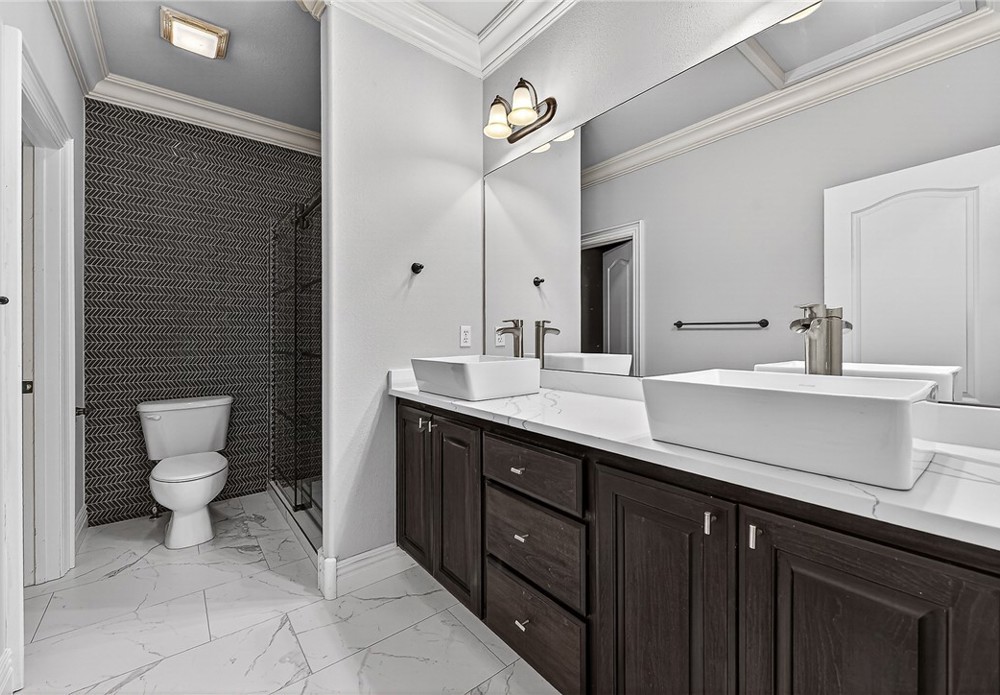 Stunning executive estate situated on approximately 1.52 acres in a desirable Fayetteville location offering privacy with convenience to shopping, dining, schools, and trails. This spacious home features 5 bedrooms, 3.5 baths, and well-designed living space. Freshly painted interior enhances the bright, updated feel throughout. Main level offers a luxurious primary suite plus bonus room ideal for office or secondary bedroom. Beautiful kitchen with oversized eat-in area, built-ins and abundant cabinetry. Upstairs includes additional 3 bedrooms, media/bonus room, Jack-and-Jill bath and additional bathroom. Enjoy elegant finishes, generous room sizes, and exceptional storage throughout. Room for a future pool.