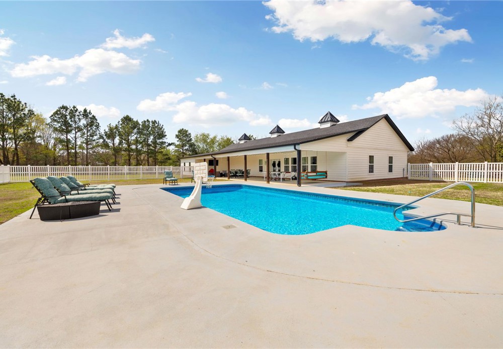 Custom-built estate on 2.04 acres in East Fayetteville featuring a pool and two separate dwellings for versatile use. The main residence offers 3 bedrooms on the main level plus a bonus room upstairs. Spacious open living area with ample dining space designed for both everyday living and entertaining. The detatched pool house spans approximately 1,700 sq ft with a fully equipped kitchen, living area, 2 bedrooms, 2 baths and an additional 1,000 sq ft of shop space complete with W/D hookups and a full bay door. Ideal property for guests, multigenerational living or a private retreat. Enjoy an 18x36 heated sports pool, covered porches, fully fenced back yard for a rare blend of privacy and versatility minutes from the University of Arkansas.