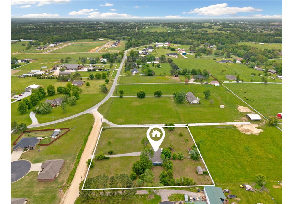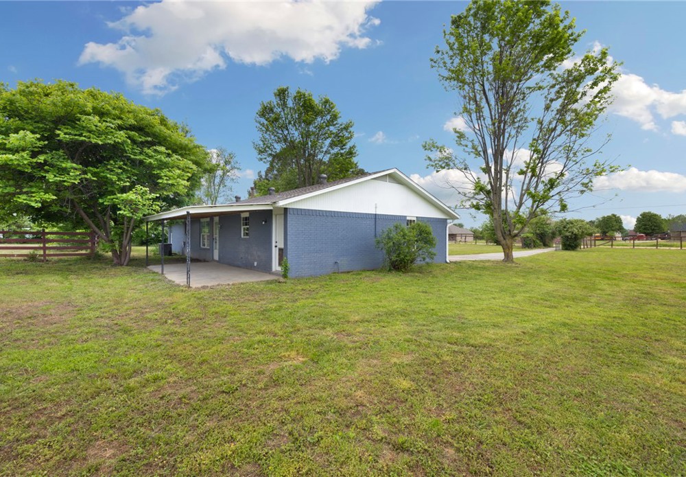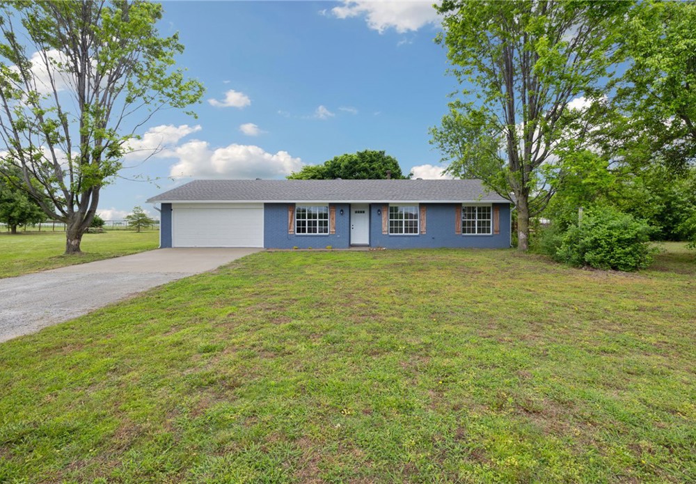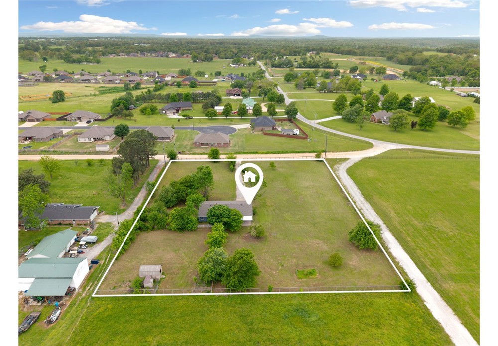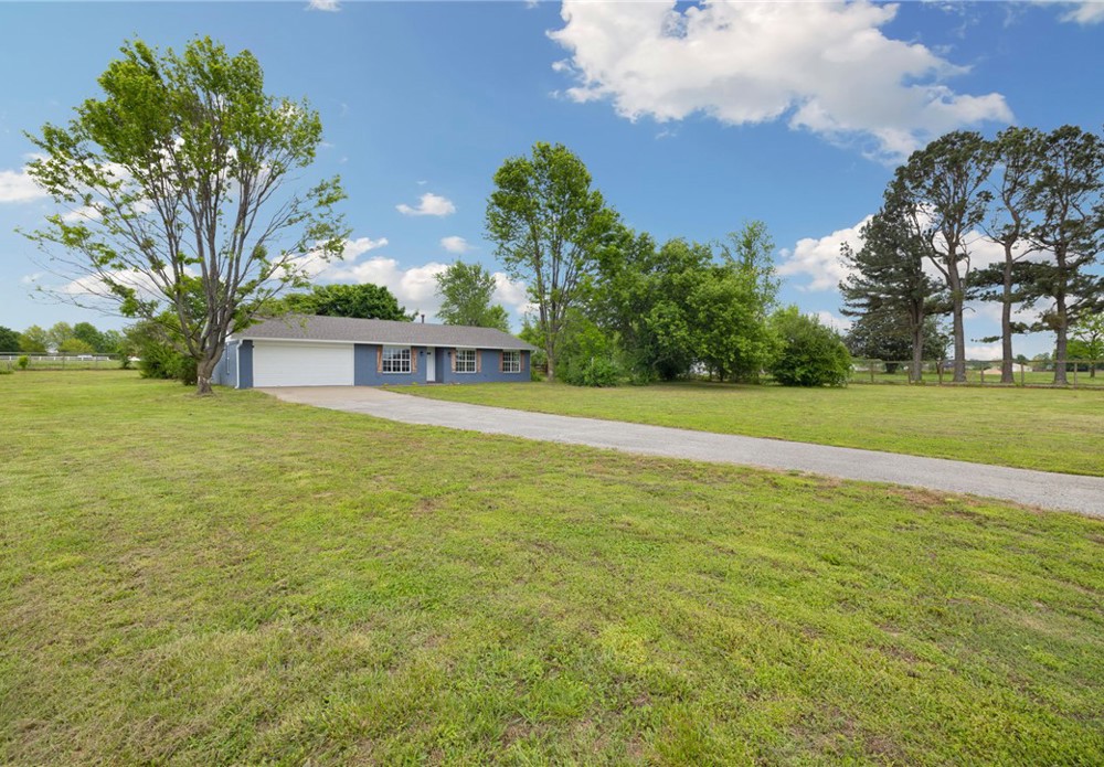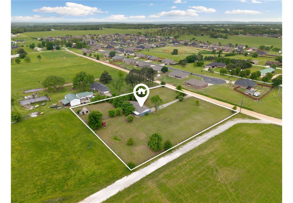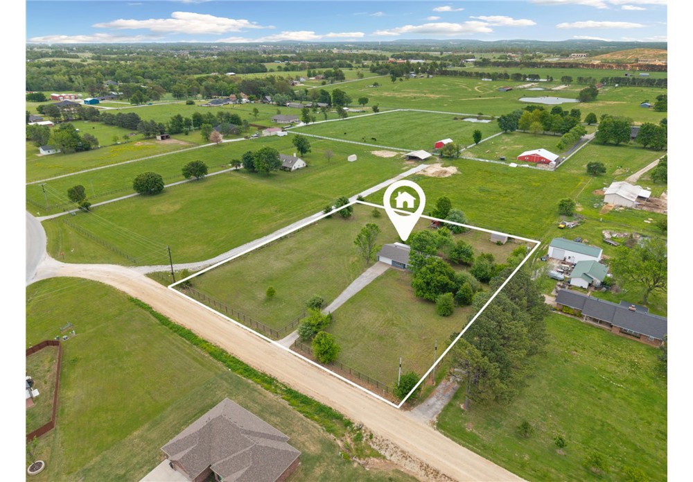 Picture yourself enjoying your morning coffee on your covered back patio on your flat, level, cleared 2 acre lot that is fully fenced! This home has been recently painted and is move in ready. Featuring 3 bedrooms, 2 full bathrooms and a flex room for convenience. A large kitchen featuring granite countertops and stainless steel appliances. With a large living area, this home provides a functional floorplan with thoughtful finishes. Attached 2 car garage is partially converted and allows for storage. Bring your farm animals and raise them here! A chicken coop already on site ready for your flock! Perfect for a hobby farm, 4H or whatever you fancy with a section fenced for livestock. A designated garden area with water and plenty of room for a shop! Level, fully fenced, clear acreage is a rare find in NWA! Don't miss your opportunity to get a slice of country living while still being close to all things NWA and only 10 min to center of Tontitown. Located in Springdale school district. Schedule your showing today!