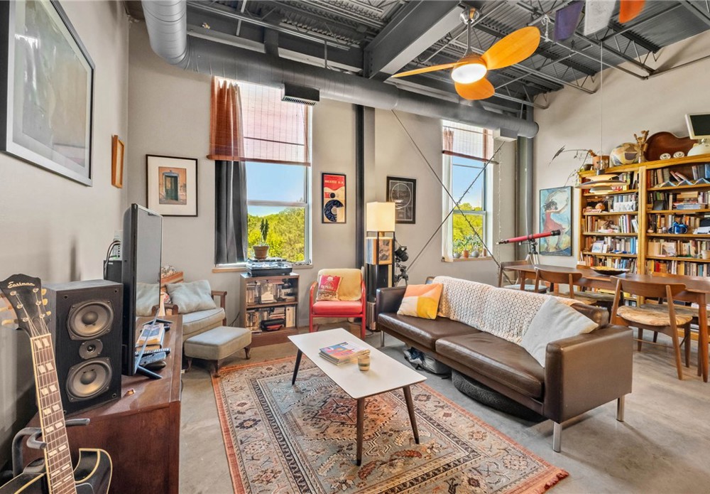 Experience a piece of Fayetteville’s history in this classic loft style condo. Once a 1950s feed mill, this landmark building has been reimagined as the heart of the Mill District. This rare 1,356 sq ft, two-bedroom loft is all about character. The interior keeps the original spirit of the building with soaring ceilings, exposed metal beams, and polished concrete floors that keep the space feeling open and simple. The main floor features a wide-open layout where the kitchen, dining, and living areas flow together naturally. Upstairs, the expanded floor plan offers extra room and privacy while maintaining the building's iconic, airy feel. Perfectly positioned on the Razorback Greenway, you’re just steps from the Lower Ramble, Cultural Arts Corridor, and the Entertainment District.This prime location offers immediate access to the dining and entertainment of South Yard, The Mill, and Prairie St placing the best of downtown Fayetteville right at your doorstep.