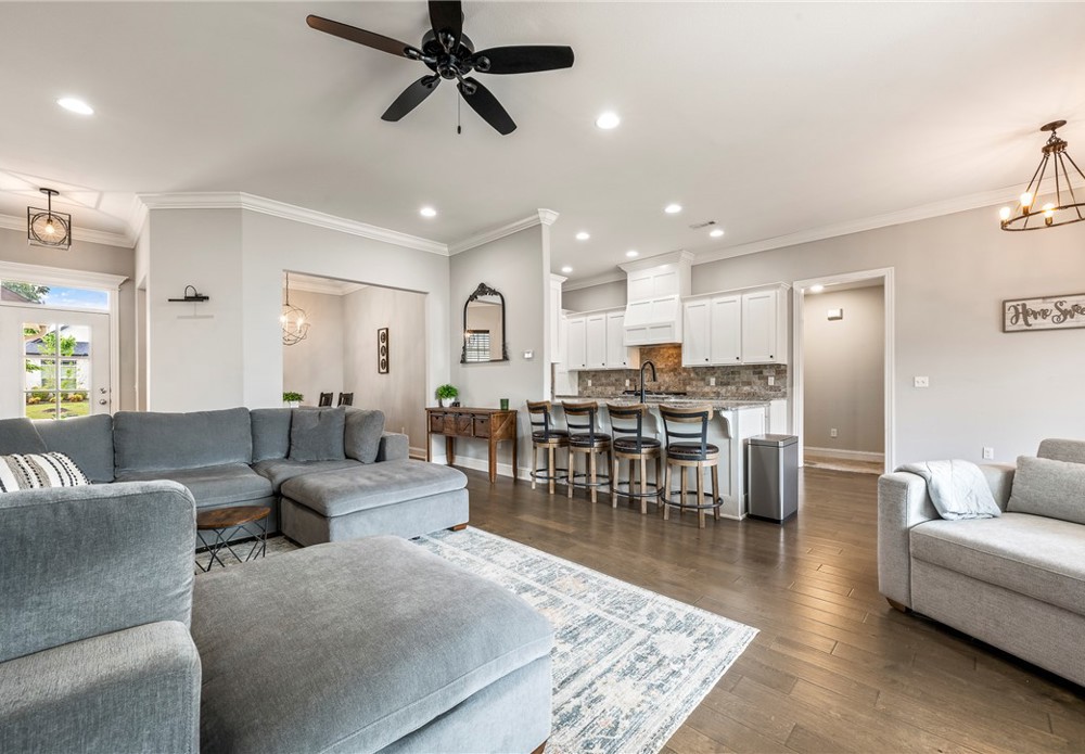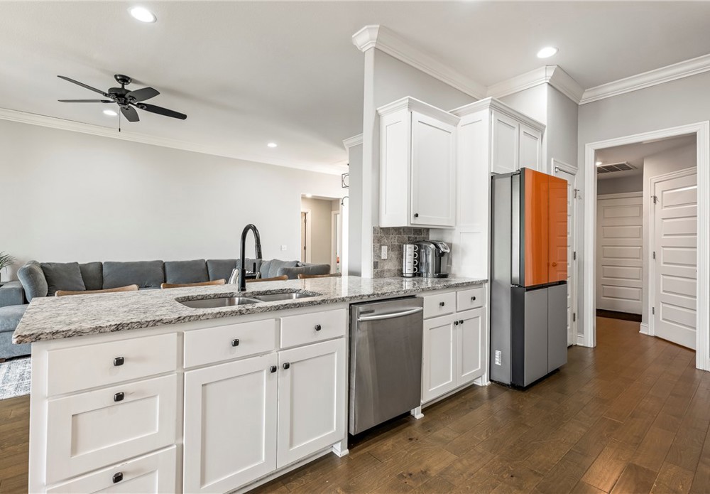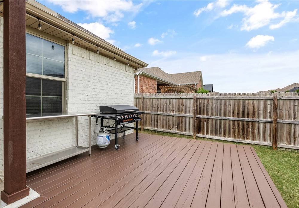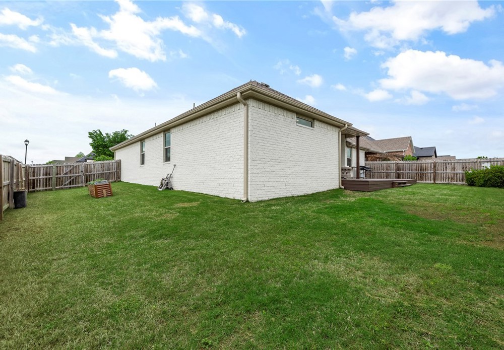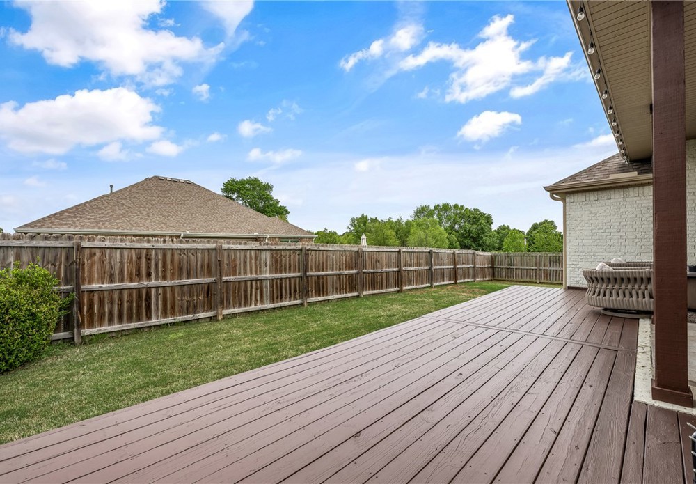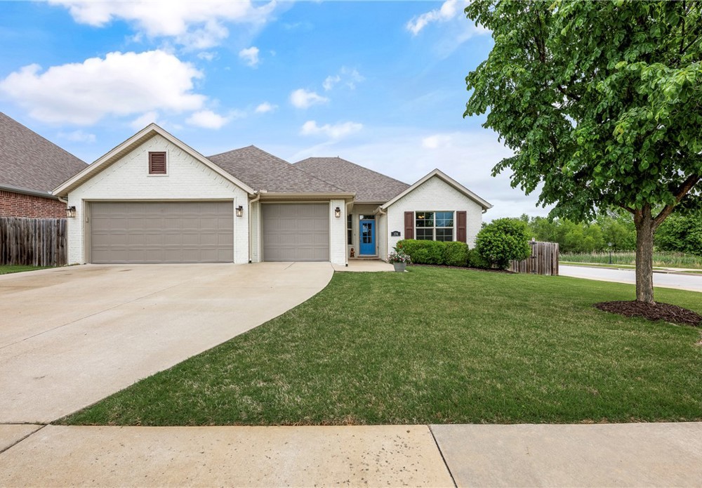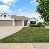 Fresh white curb appeal meets a smart, functional layout in this beautifully maintained 4 bed, 3 bath home on a spacious corner lot. Inside, you’ll find a desirable split floorplan with two bedrooms on each side—ideal for privacy and flexibility. A formal dining room sits at the front of the home, while the large living area opens seamlessly to the kitchen, creating an inviting space for everyday living and entertaining. The kitchen features granite countertops, ample cabinet storage, pantry, refrigerator, and an island with bar seating. Cozy up by the gas fireplace or step outside to the oversized covered back deck—perfect for relaxing or hosting. All just minutes from I-49 for easy access to everything Northwest Arkansas has to offer.