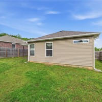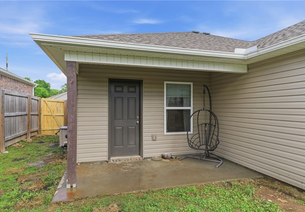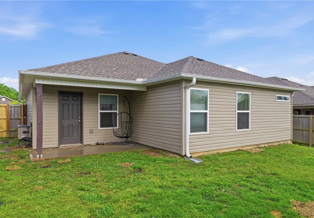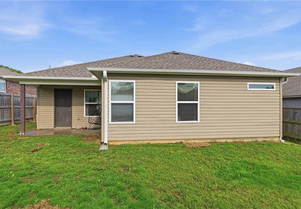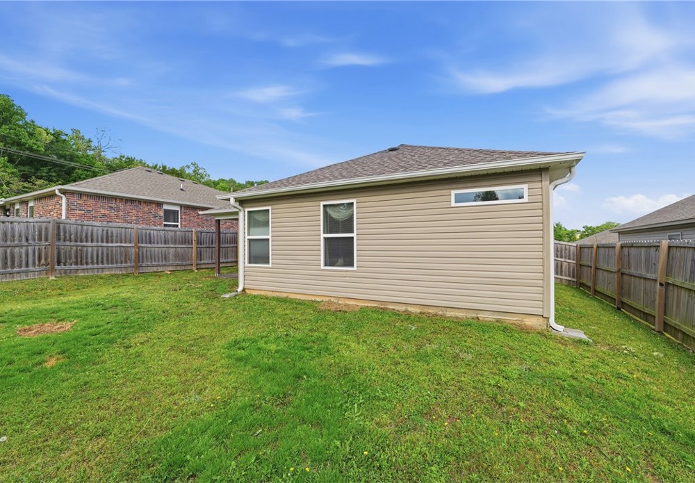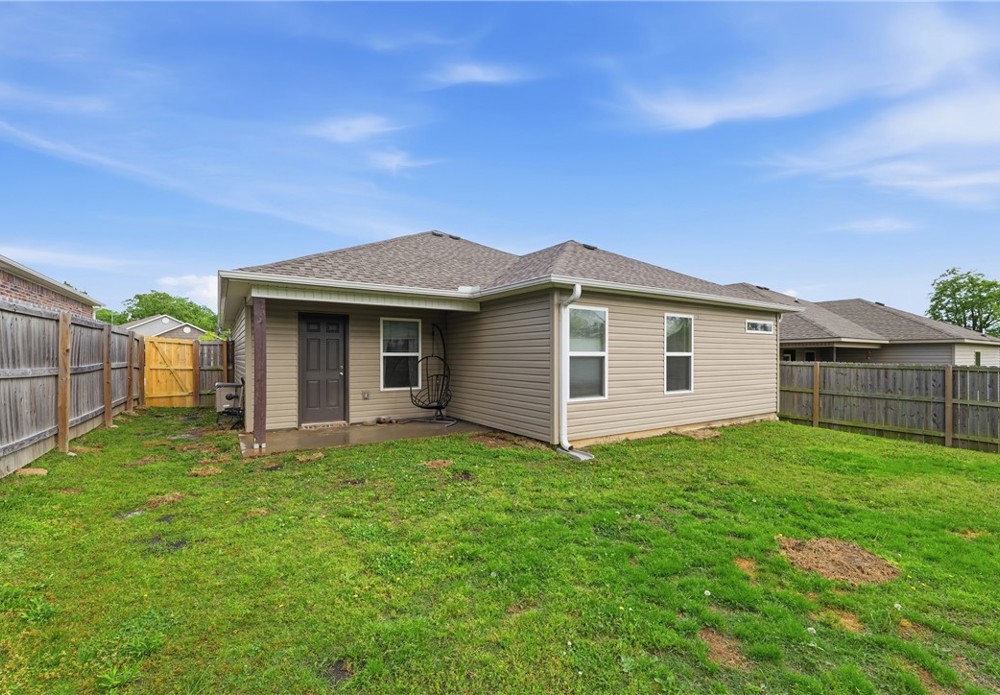 Welcome to this beautifully maintained 2021-built home in the desirable Park Meadows subdivision in Fayetteville. This 3-bedroom, 2-bath home offers 1,209 heated square feet with a bright open-concept layout, neutral tones, and abundant natural light. The kitchen features stainless steel appliances, electric range, bar seating, and rich wood cabinetry, flowing seamlessly into the living and dining areas—perfect for everyday living and entertaining. The spacious primary suite includes a walk-in closet and private bath, while secondary bedrooms offer flexibility for guests or a home office. Enjoy durable flooring, plush carpet in bedrooms, and modern finishes throughout. Step outside to a fenced backyard with room to relax or play. Complete with a 2-car garage and located near I-49, shopping, dining, and Fayetteville schools, this home is ideal for homeowners or investors alike Well-kept interiors show pride of ownership with clean lines and a split plan. Enjoy a covered patio and low-maintenance yard for gatherings.