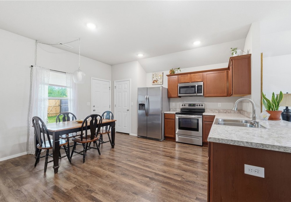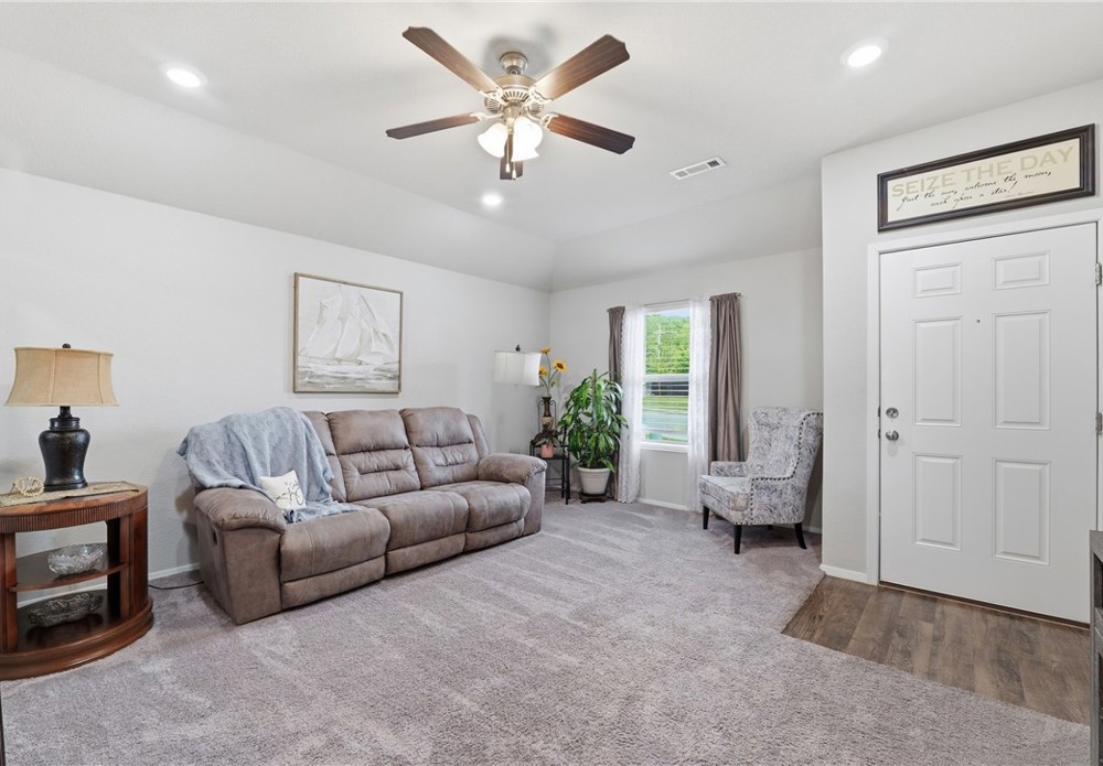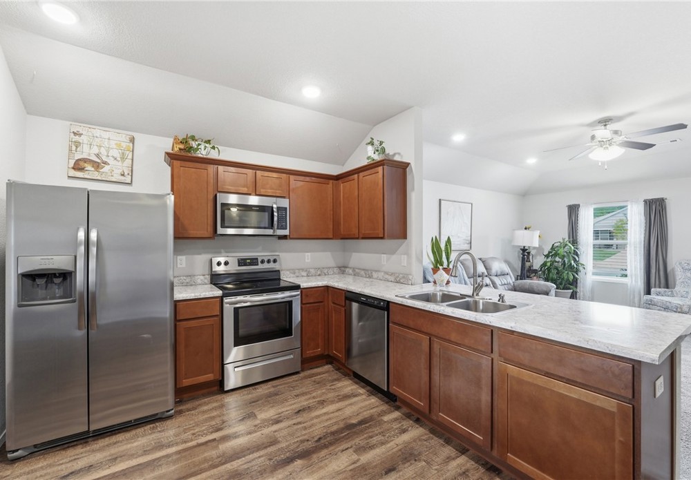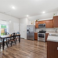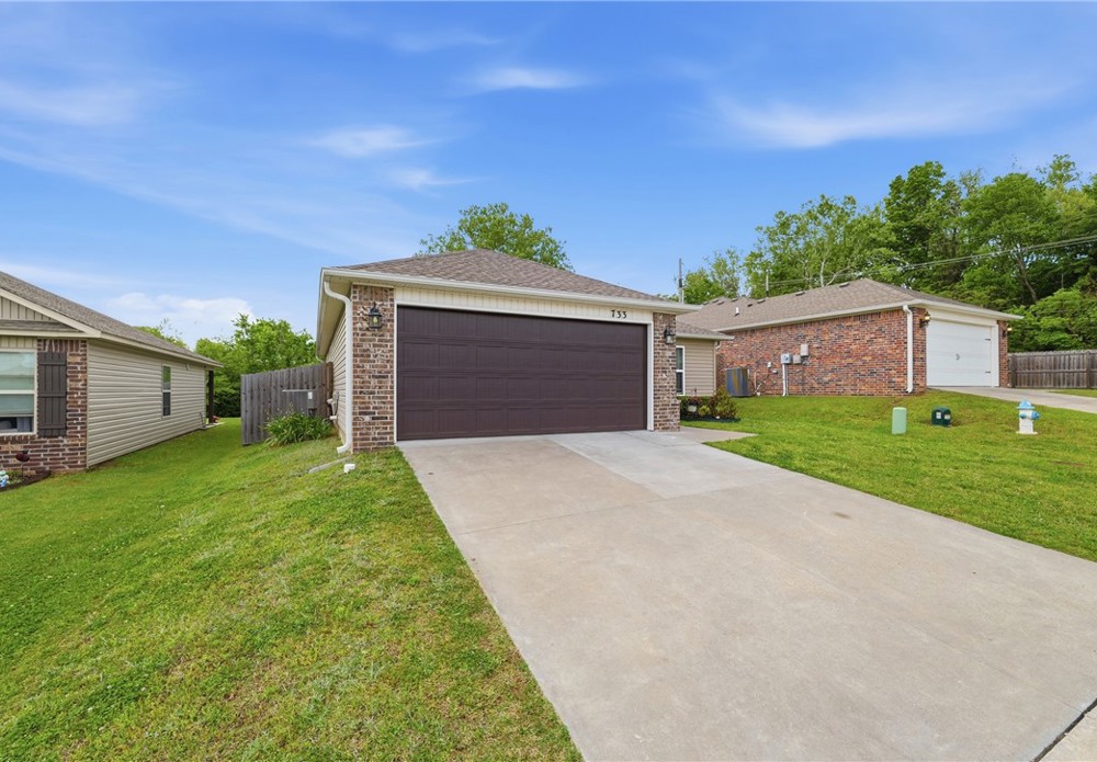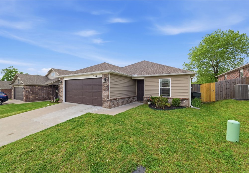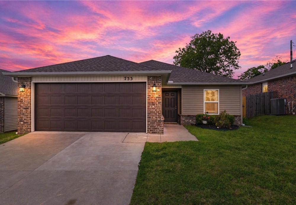 Welcome to this beautifully maintained 2021-built home in the desirable Park Meadows subdivision in Fayetteville. This 3-bedroom, 2-bath home offers 1,209 heated square feet with a bright open-concept layout, neutral tones, and abundant natural light. The kitchen features stainless steel appliances, electric range, bar seating, and rich wood cabinetry, flowing seamlessly into the living and dining areas—perfect for everyday living and entertaining. The spacious primary suite includes a walk-in closet and private bath, while secondary bedrooms offer flexibility for guests or a home office. Enjoy durable flooring, plush carpet in bedrooms, and modern finishes throughout. Step outside to a fenced backyard with room to relax or play. Complete with a 2-car garage and located near I-49, shopping, dining, and Fayetteville schools, this home is ideal for homeowners or investors alike Well-kept interiors show pride of ownership with clean lines and a split plan. Enjoy a covered patio and low-maintenance yard for gatherings.
