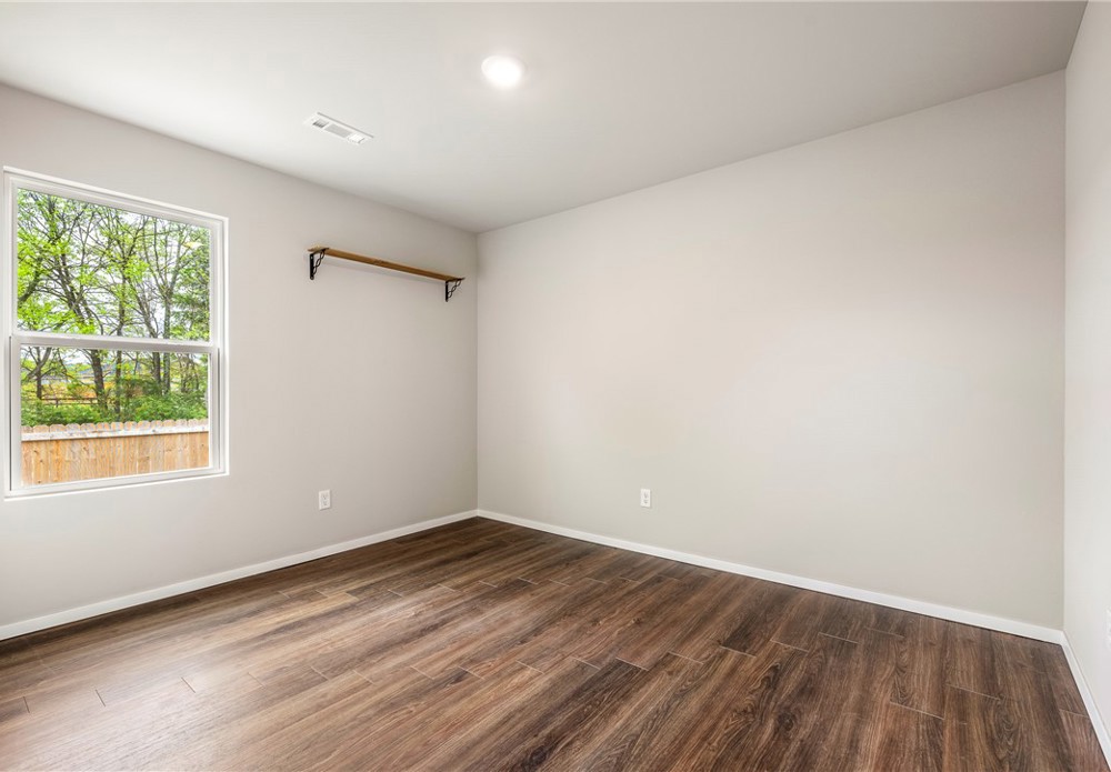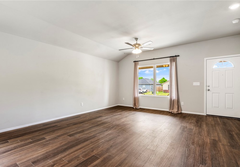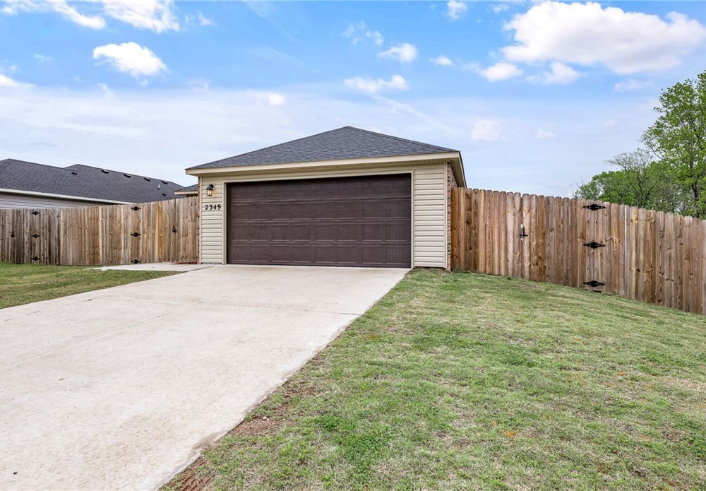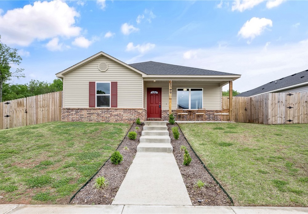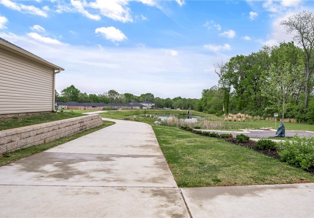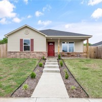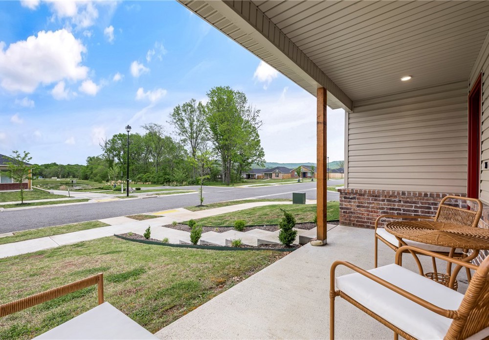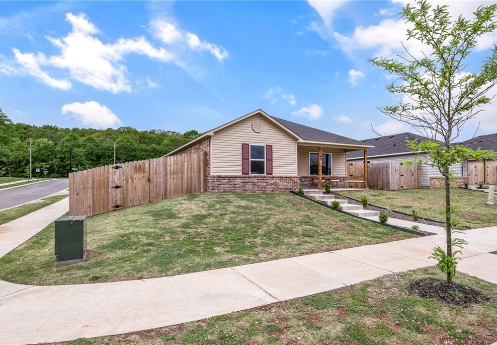 This like-new home offers light-filled rooms, elegant finishes, and a thoughtful one-level layout ideal for quiet mornings or easy entertaining. Located on a charming corner lot minutes from downtown Fayetteville, the University of Arkansas, and major NWA routes, it’s perfectly situated. Inside, abundant windows brighten clean, durable LVP floors. The open-concept kitchen features granite countertops, warm wood cabinets, and peninsula seating, plus a breakfast nook, dining area, and spacious living room for everything from coffee to gatherings. The primary suite includes a soaking tub, vanity seating, and a large walk-in closet. Two additional bedrooms and a hall bath offer flexible space. Outside, a covered front porch overlooks a park and trails in a walkable neighborhood, while the back patio enjoys hilltop views above the privacy fence. Two fenced yards suit pets or gardening, with POA lawn care beyond. Attached alley-access garage has no steps. Showing now for Lease starting after May 15.
