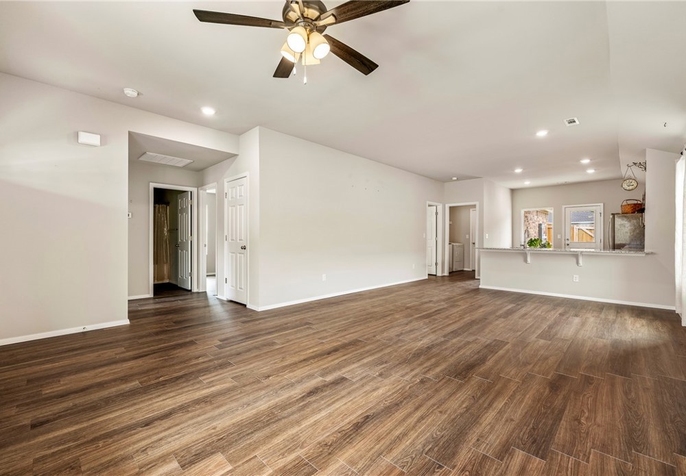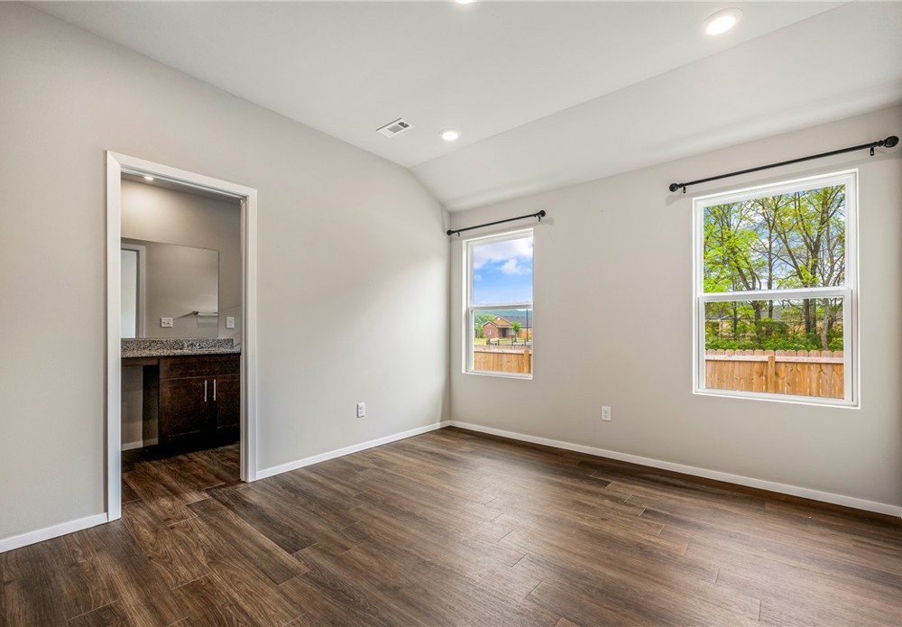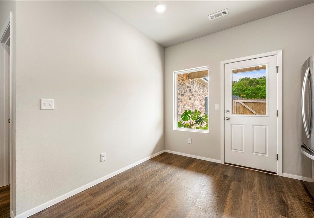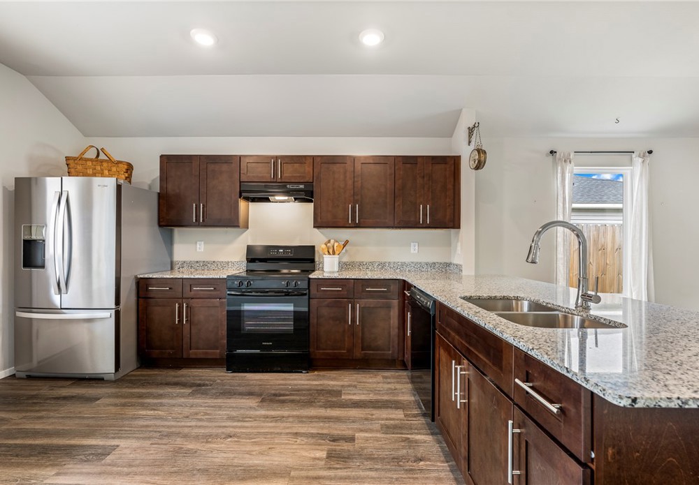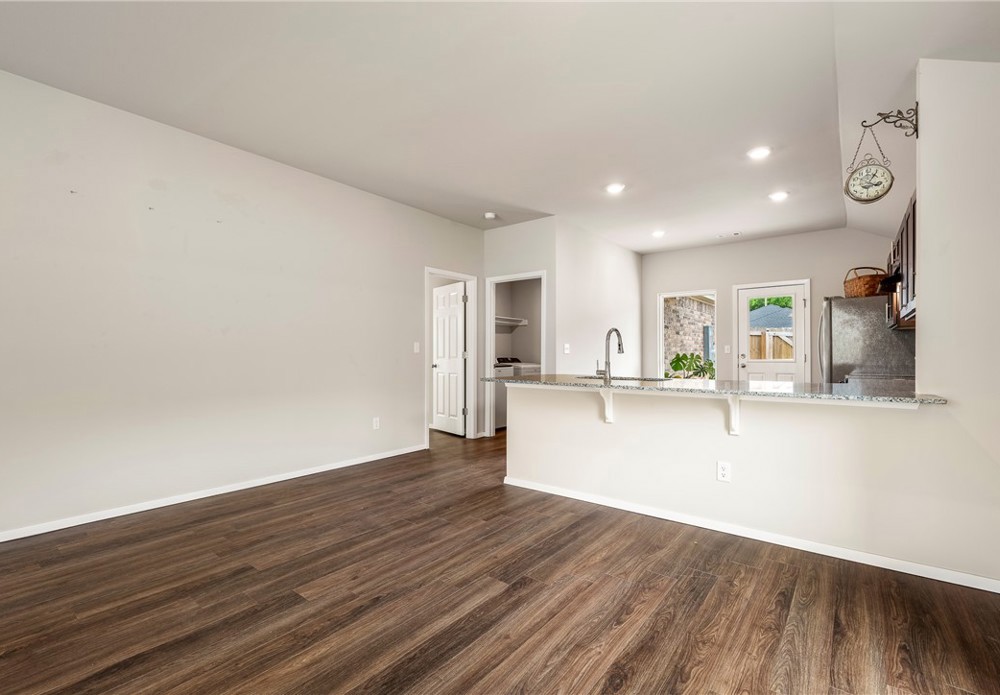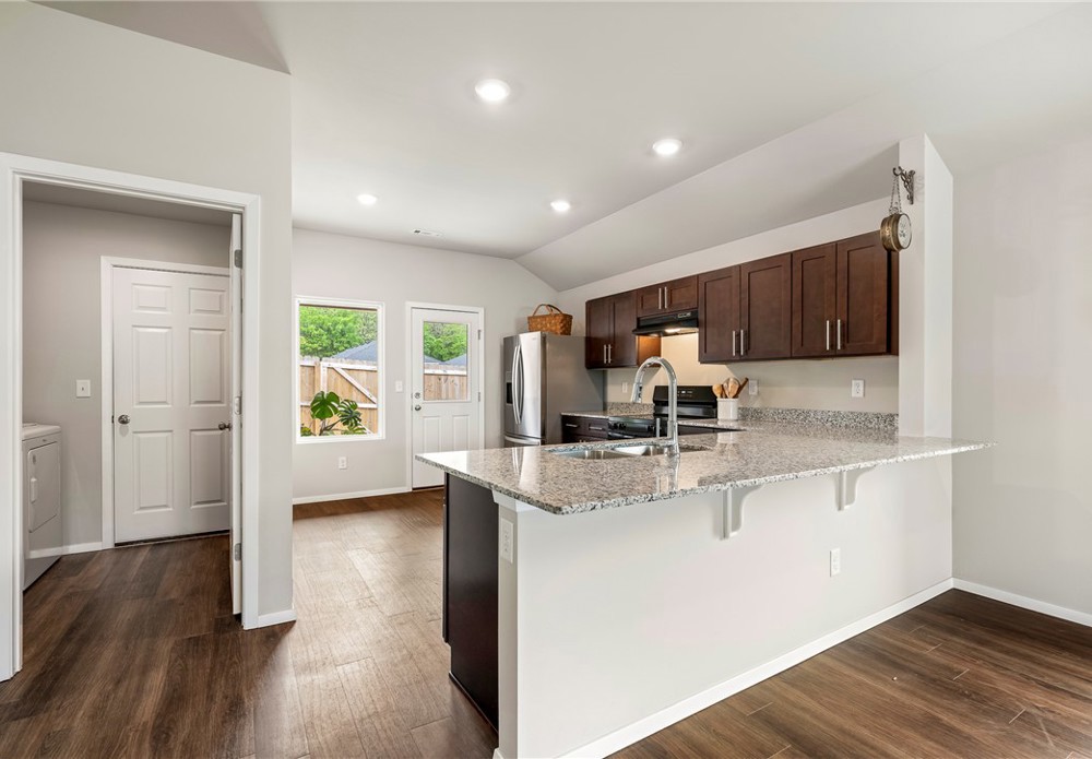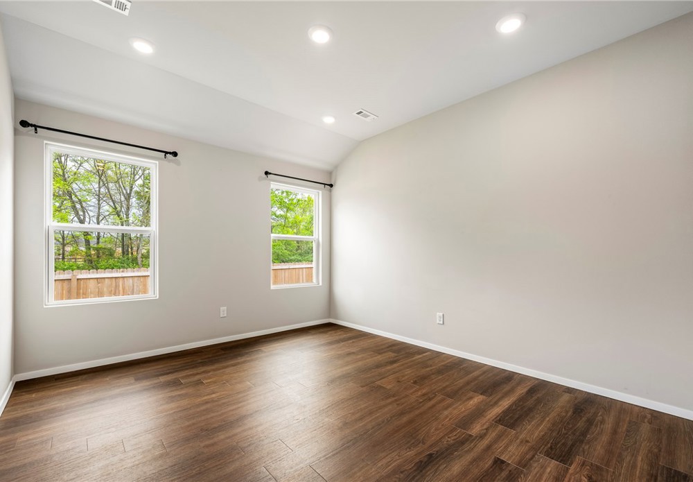 This like-new home offers light-filled rooms, elegant finishes, and a thoughtful one-level layout ideal for quiet mornings or easy entertaining. Located on a charming corner lot minutes from downtown Fayetteville, the University of Arkansas, and major NWA routes, it’s perfectly situated. Inside, abundant windows brighten clean, durable LVP floors. The open-concept kitchen features granite countertops, warm wood cabinets, and peninsula seating, plus a breakfast nook, dining area, and spacious living room for everything from coffee to gatherings. The primary suite includes a soaking tub, vanity seating, and a large walk-in closet. Two additional bedrooms and a hall bath offer flexible space. Outside, a covered front porch overlooks a park and trails in a walkable neighborhood, while the back patio enjoys hilltop views above the privacy fence. Two fenced yards suit pets or gardening, with POA lawn care beyond. Attached alley-access garage has no steps. Showing now for Lease starting after May 15.